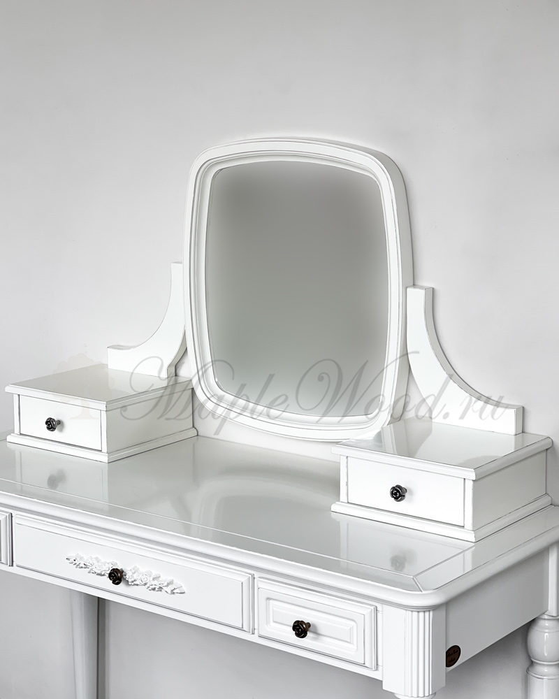 Оригинальное зеркало в раме с двумя выдвижными ящиками служит дополнением к туалетному столу из коллекции Артемида от фабрики Monte Cristo Mobili.