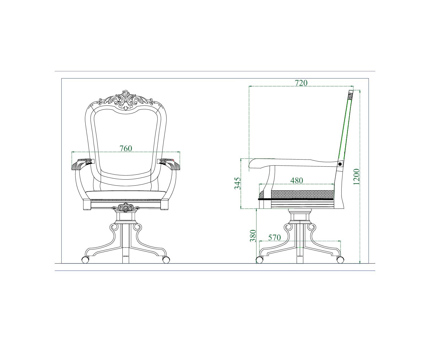Каркас кресла выполнен из натурального массива дерева и декорирован художественной резьбой, а в качестве обивочного материала предлагается ткань или натуральная кожа из каталога производителя.