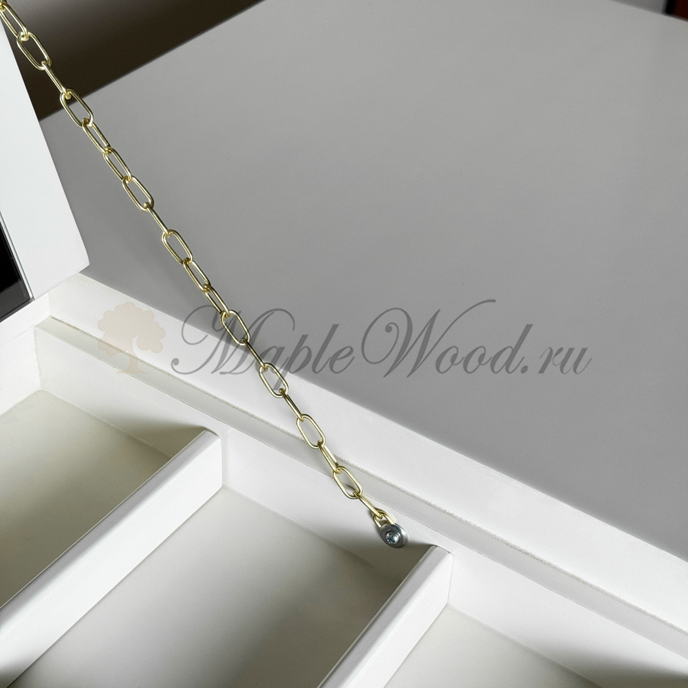 Изделие выполнено в итальянском стиле из натурального дерева в светлом оттенке «слоновая кость» и декорировано золотой фурнитурой, которая подчеркивает оригинальность дизайна.