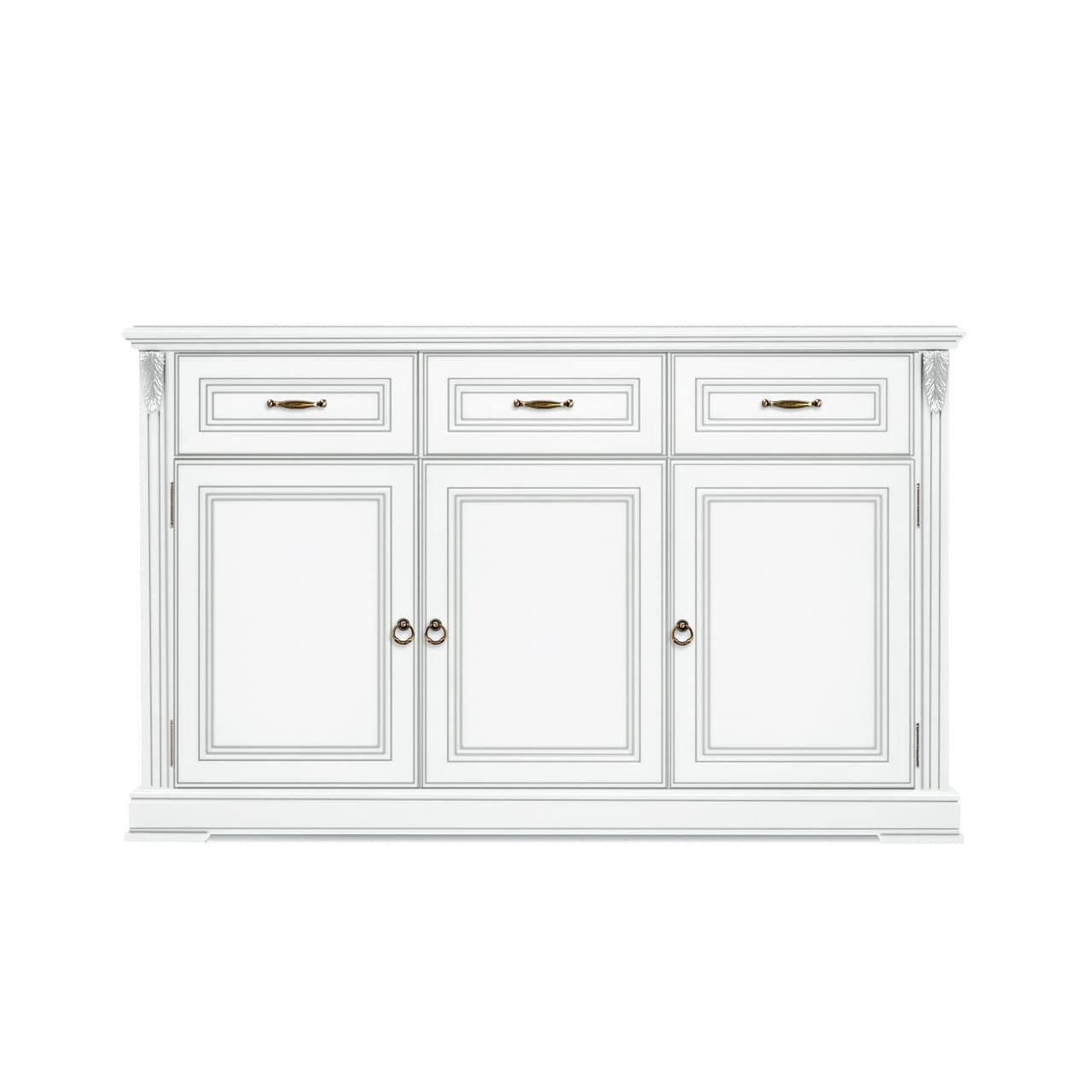 Комод для гостиной из коллекции Палермо от фабрики Тимбер оборудован полками за распашными дверцами и тремя выдвижными ящиками, которые оснащены системой плавного закрывания.