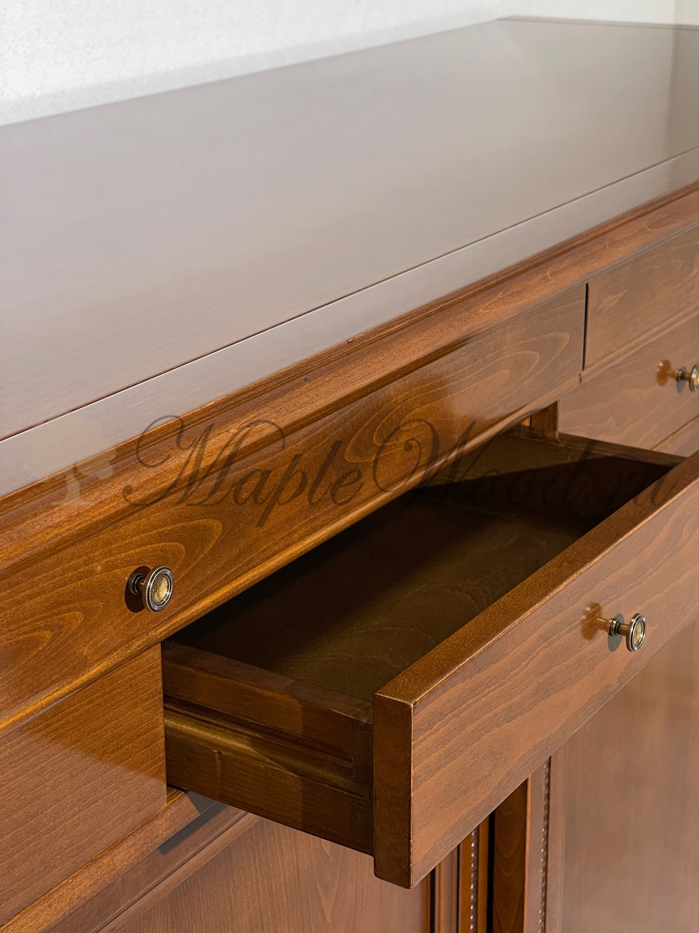 Комод выполнен в неоклассическом стиле из натурального дерева сочетает в себе строгость и благородство дизайна без излишних декоративных украшений.