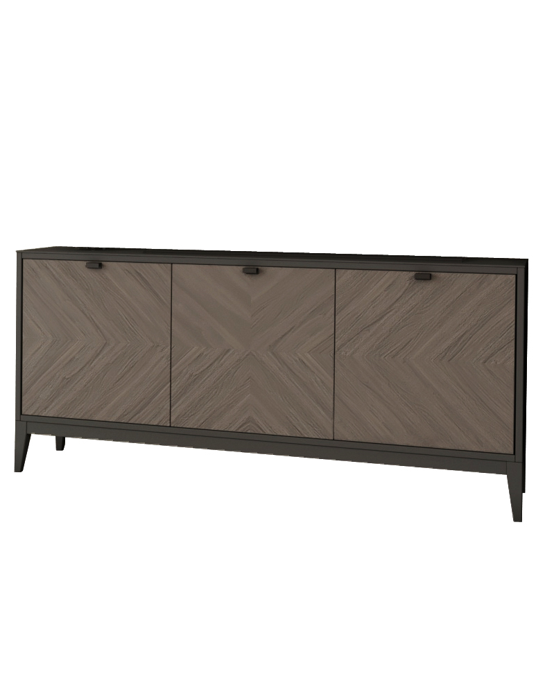 Комод для гостиной из коллекции Тоскана от фабрики Тимбер оборудован полками за распашными дверцами.