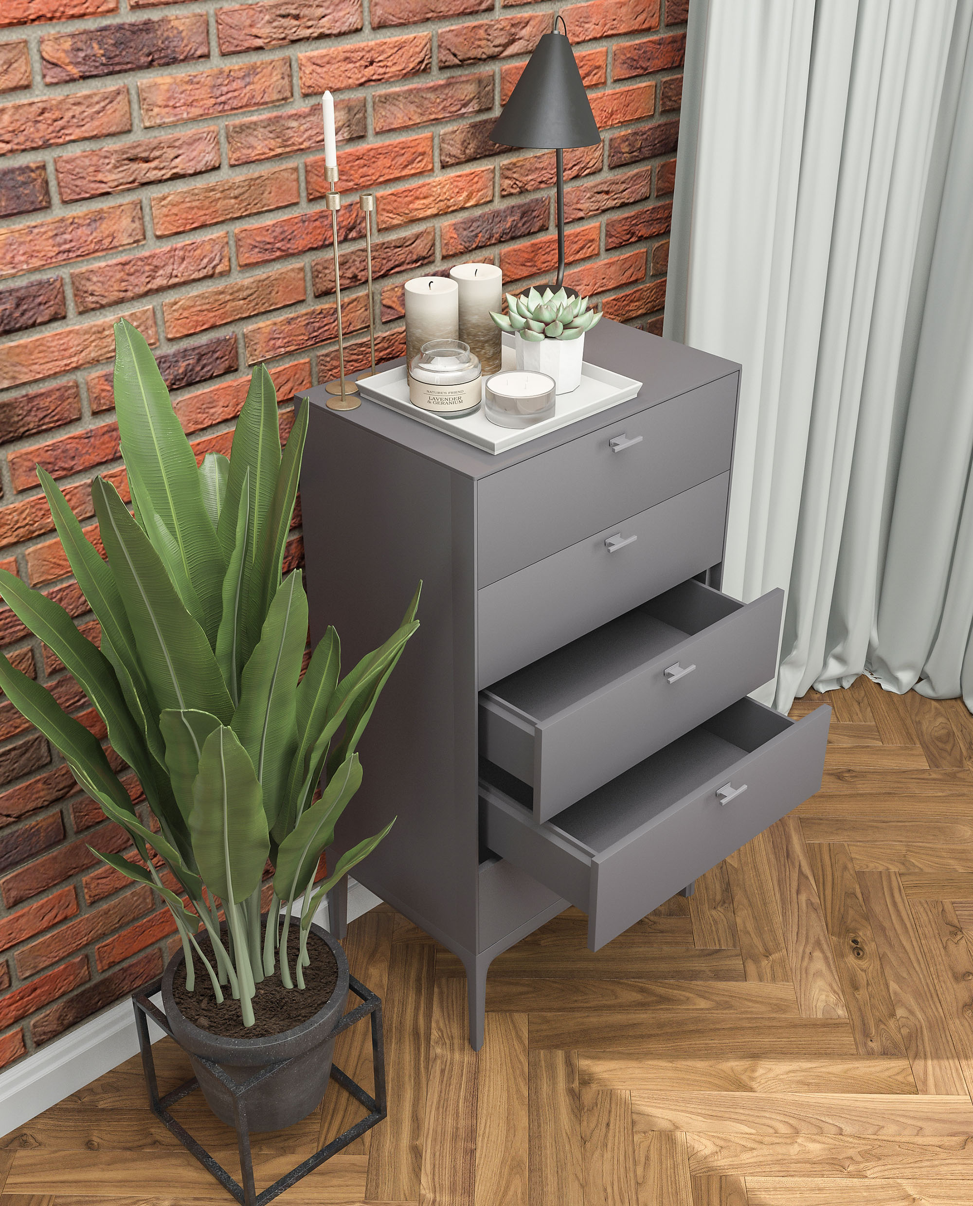 Высокий комод из коллекции Верона от фабрики Тимбер оборудован выдвижными ящиками, которые оснащены системой плавного закрывания.