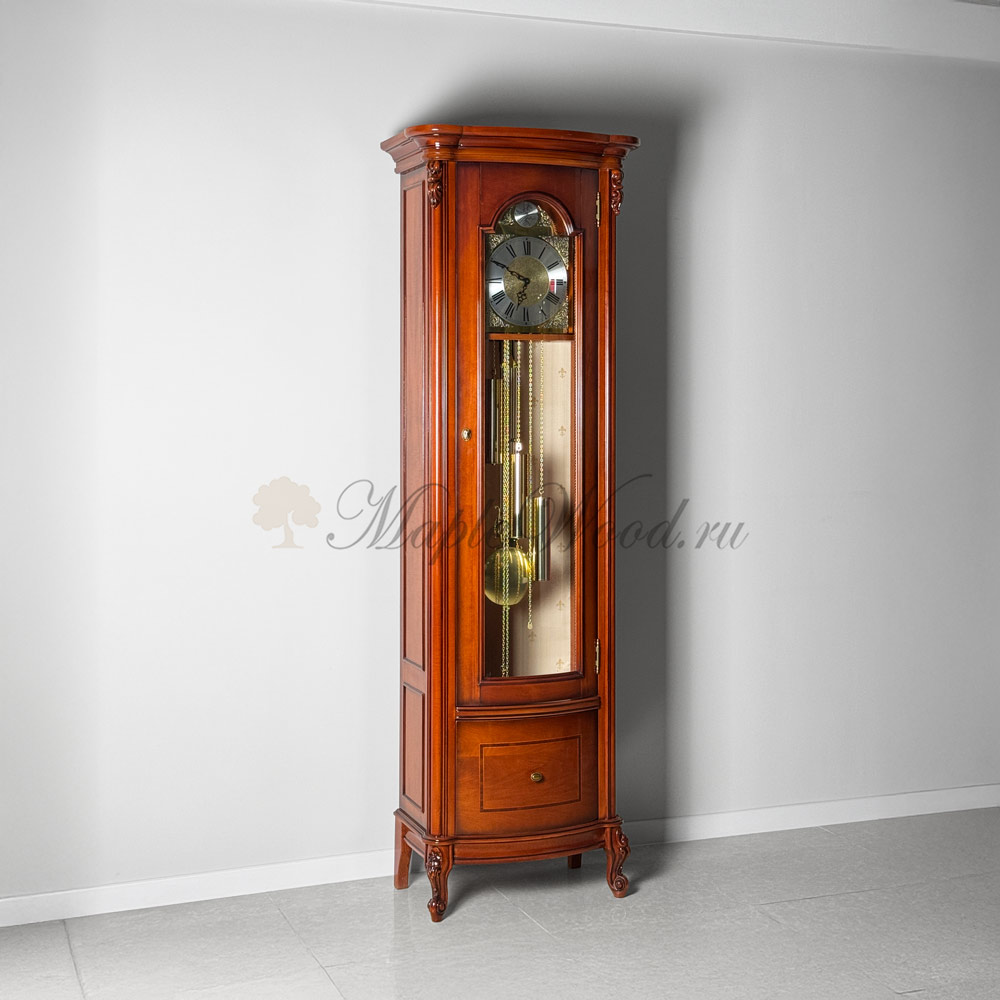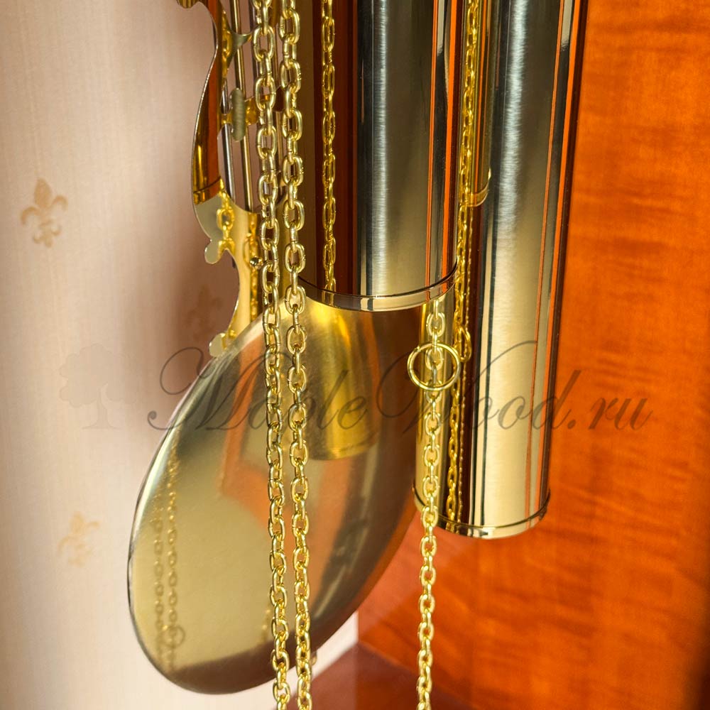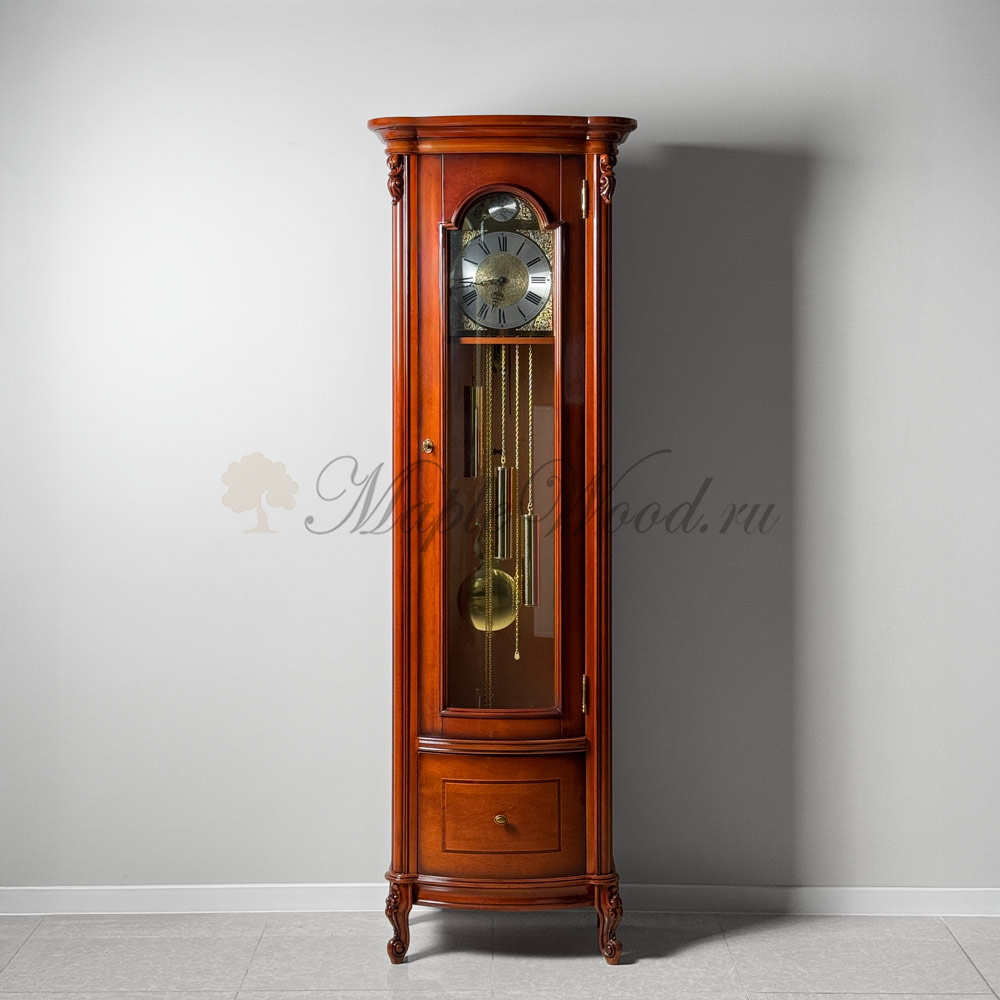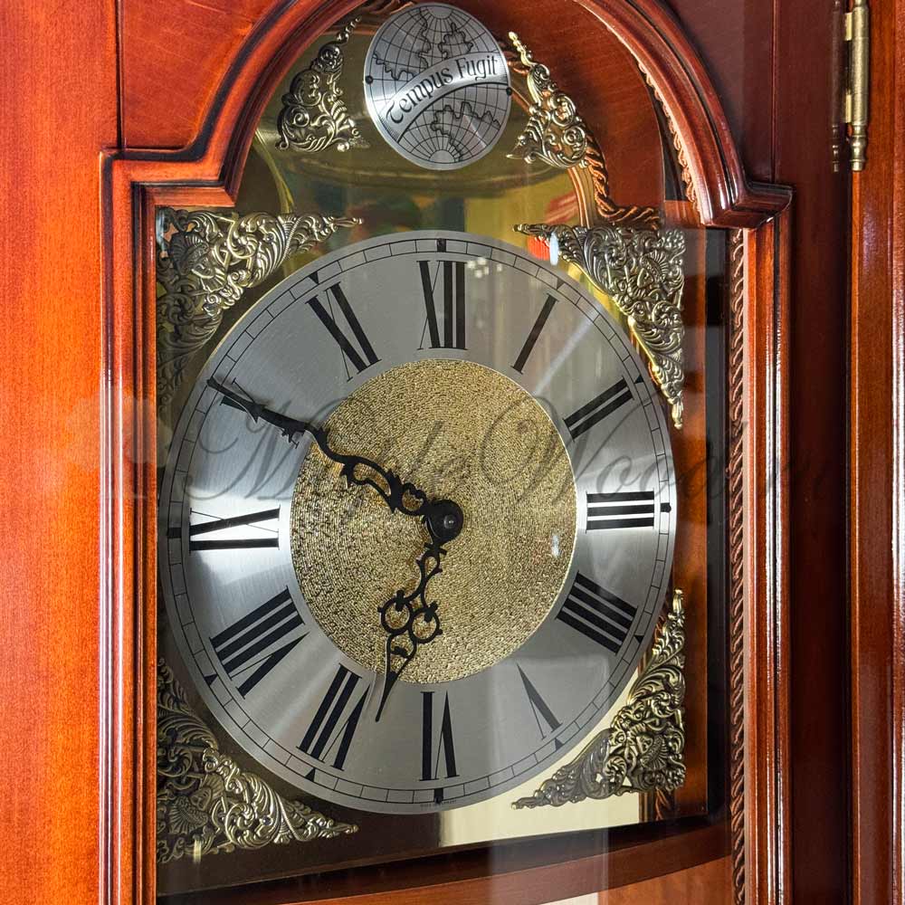 Каркас напольных часов выполнен из массива дерева и декорирован эффектной инкрустацией, которая подчеркивает классический дизайн изделия.