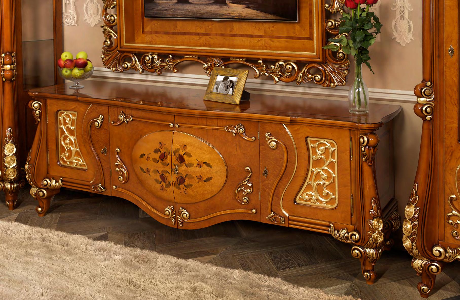 Элитная мебель для гостиной из коллекции Регина от фабрики Simex создана из натурального дерева в лучших традиция стиля рококо, сочетая в себе волнообразные контуры и богатую отделку ручной работы, которая демонстрирует роскошь изделий в каждой детали.
