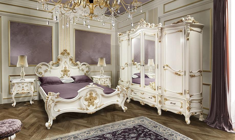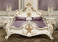 Элитная мебель для спальни из коллекции Империал от фабрики Simex выполнена из ценного массива дерева в лучших традициях стиля рококо, сочетая в себе оригинальную форму и богатую отделку ручной работы, которая покрыта позолотой.
