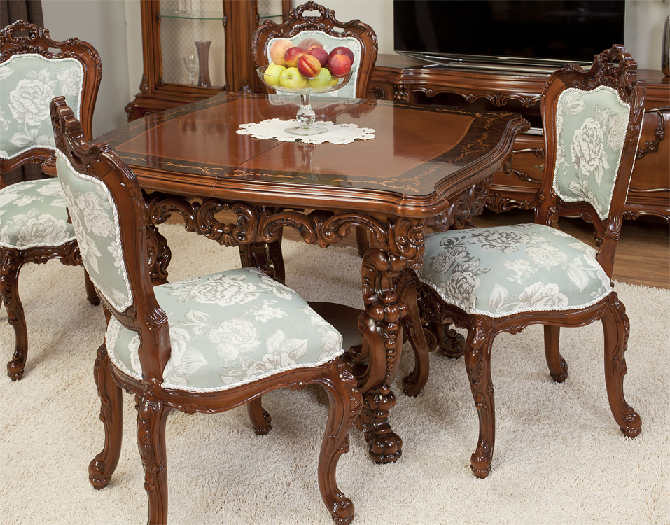 Квадратный стол из коллекции Клеопатра Люкс от фабрики Simex создан из благородного массива дерева в лучших традициях стиля рококо, сочетая в себе элегантную форму и богатую отделку с инкрустацией из шпона и художественной резьбой, которая демонстрирует роскошь изделия в каждой детали.