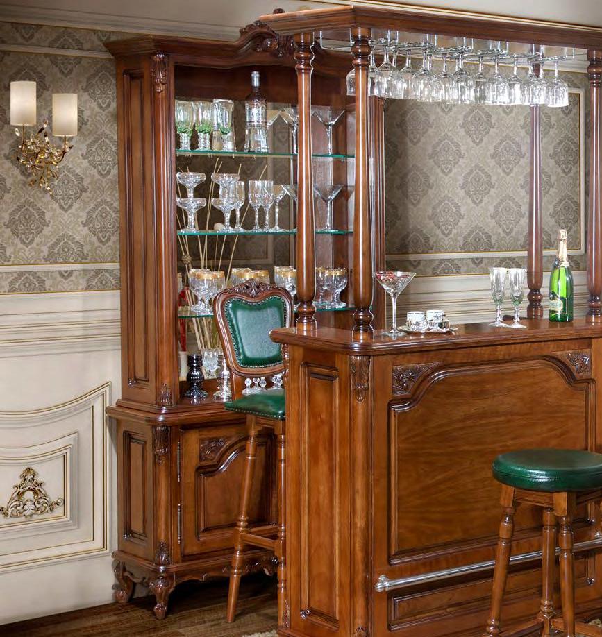Барная витрина Роял от фабрики Simex обеспечит удобную систему для хранения и демонстрации коллекции спиртных напитков и специальной посуды, а также станет экстравагантным акцентом в элегантном интерьере гостиной или рабочего кабинета.