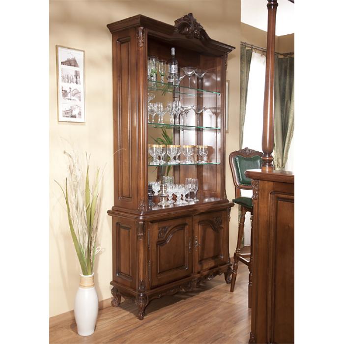 Витрина выполнена из натурального массива дерева и декорирована резьбой, которая подчеркивает классический дизайн изделия.