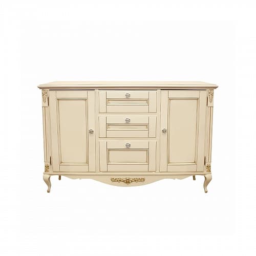 Все элементы набора выполнены из шпонированного МДФ с элементами из массива дерева и декорированы контрастной патиной, которая завершает классический дизайн изделий.