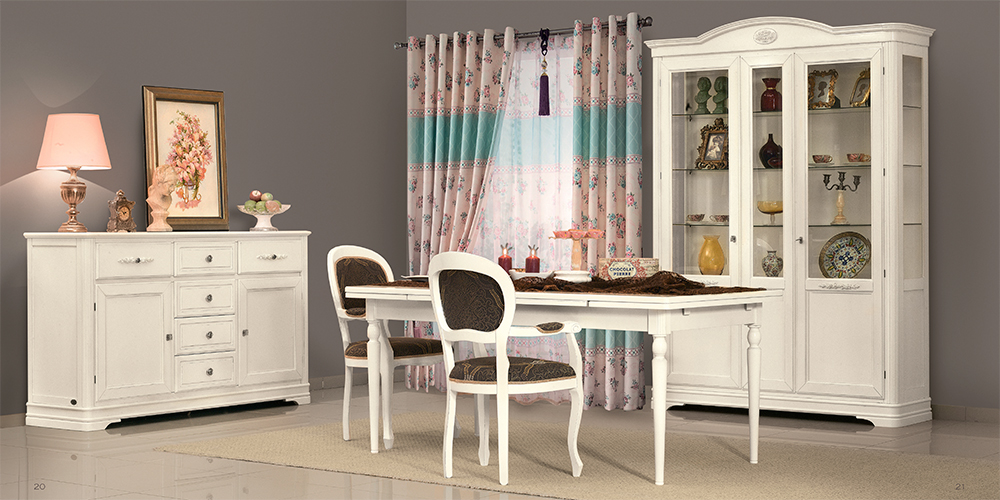 Буфет для гостиной из коллекции Артемида от фабрики Monte Cristo Mobili выполнен в неоклассическом стиле из натурального массива дерева в светлом оттенке слоновая кость и декорирована патиной, которая завершает дизайн изделия и придает ему винтажный облик.