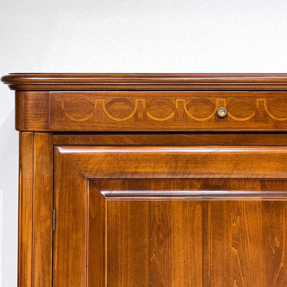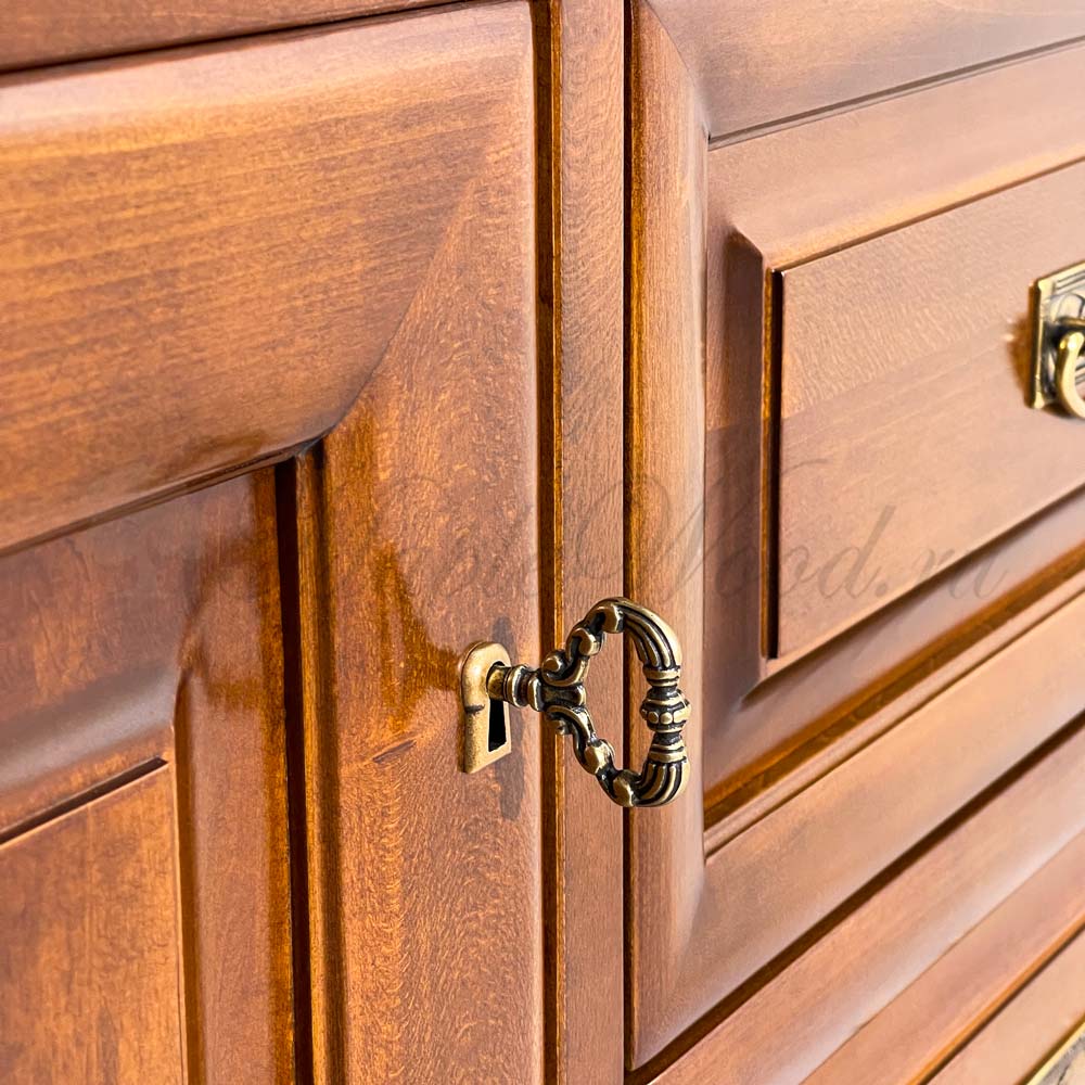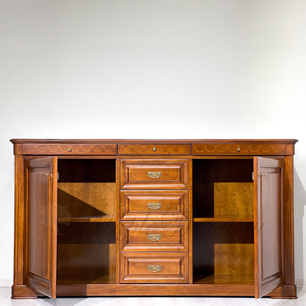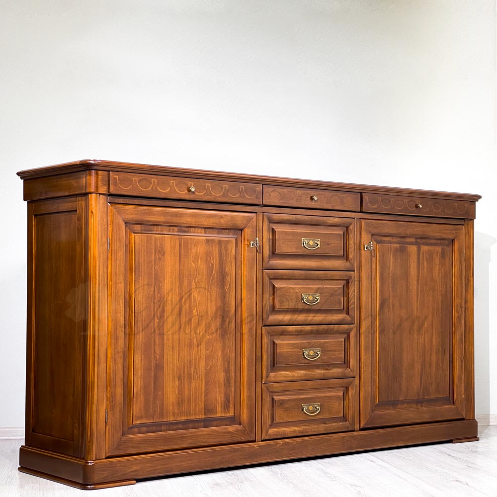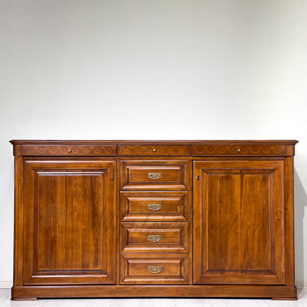 Буфет выполнен из натурального дерева в неоклассическом стиле и сочетает в себе строгость и благородство дизайна без излишних декоративных украшений.