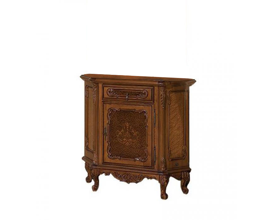 Угловой буфет из коллекции Клеопатра от мебельной фабрики Simex выполнен в классическом стиле из натурального дерева и декорирован инкрустацией и резьбой ручной работы, которая подчеркивает эффектный внешний вид изделия.
