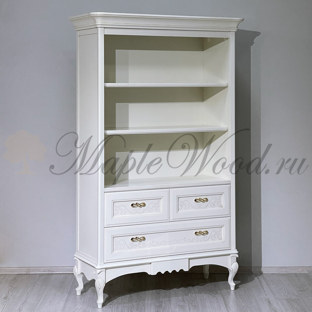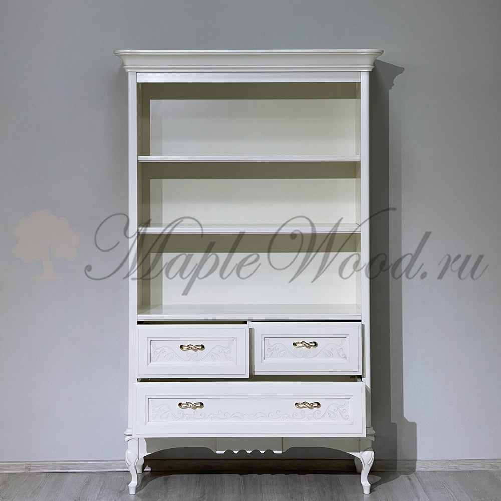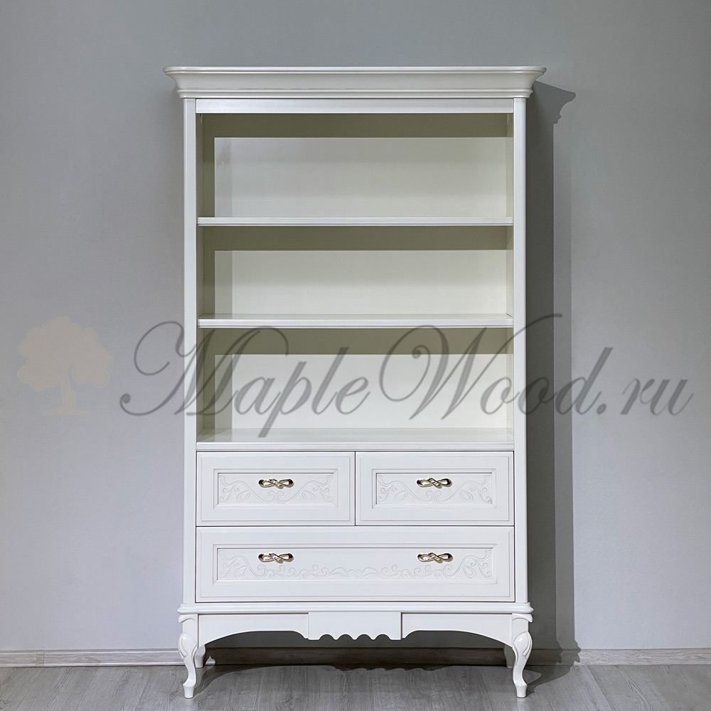 Открытая этажерка на фигурных ножках из коллекции Маттео от фабрики Мобекс | Mobex выполнена из натурального дерева и может исполнена как в светлом оттенке слоновая кость, так и в темной отделке черешня.