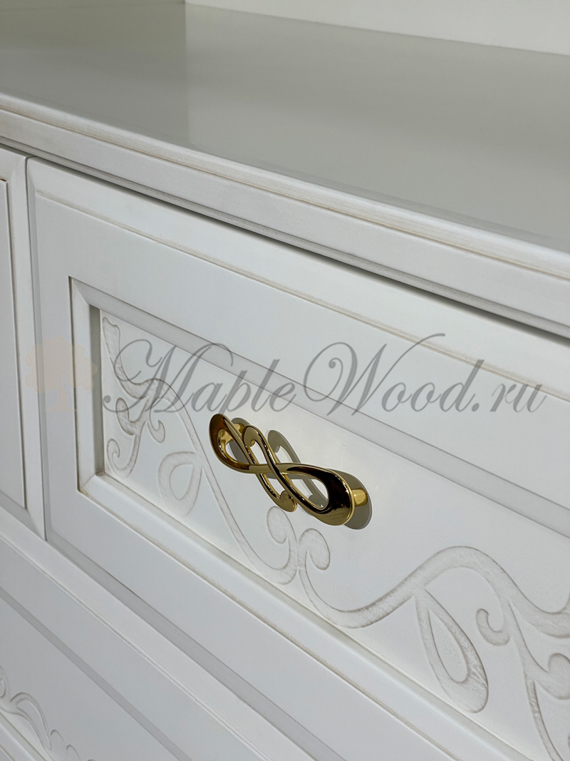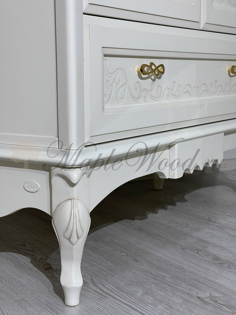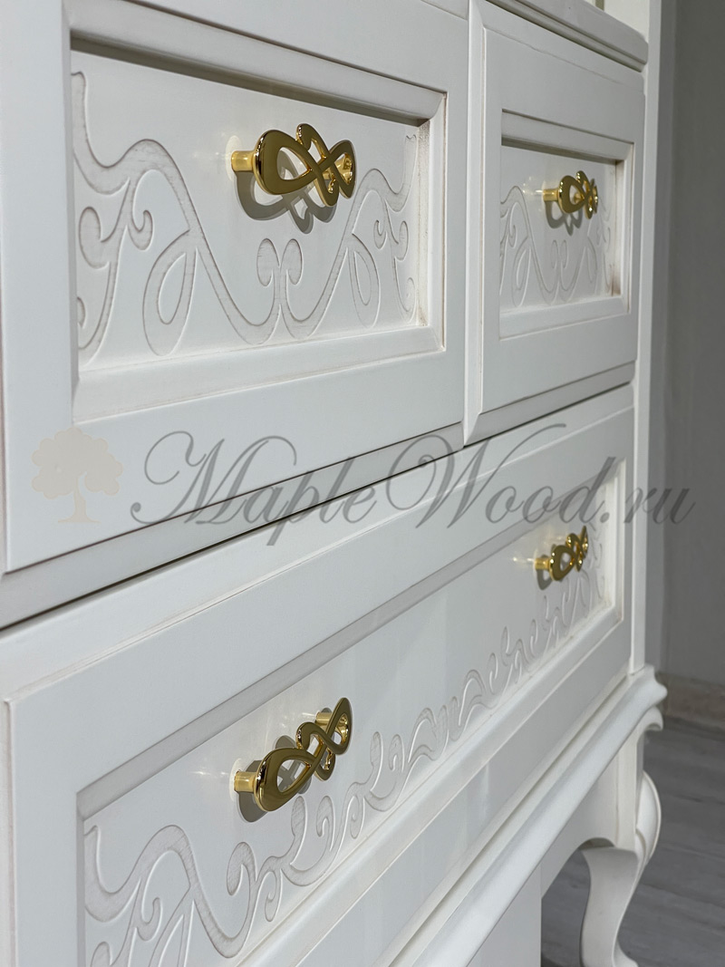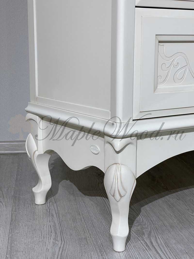 Открытая этажерка на фигурных ножках из коллекции Маттео от фабрики Мобекс | Mobex выполнена из натурального дерева и может исполнена как в светлом оттенке слоновая кость, так и в темной отделке черешня.