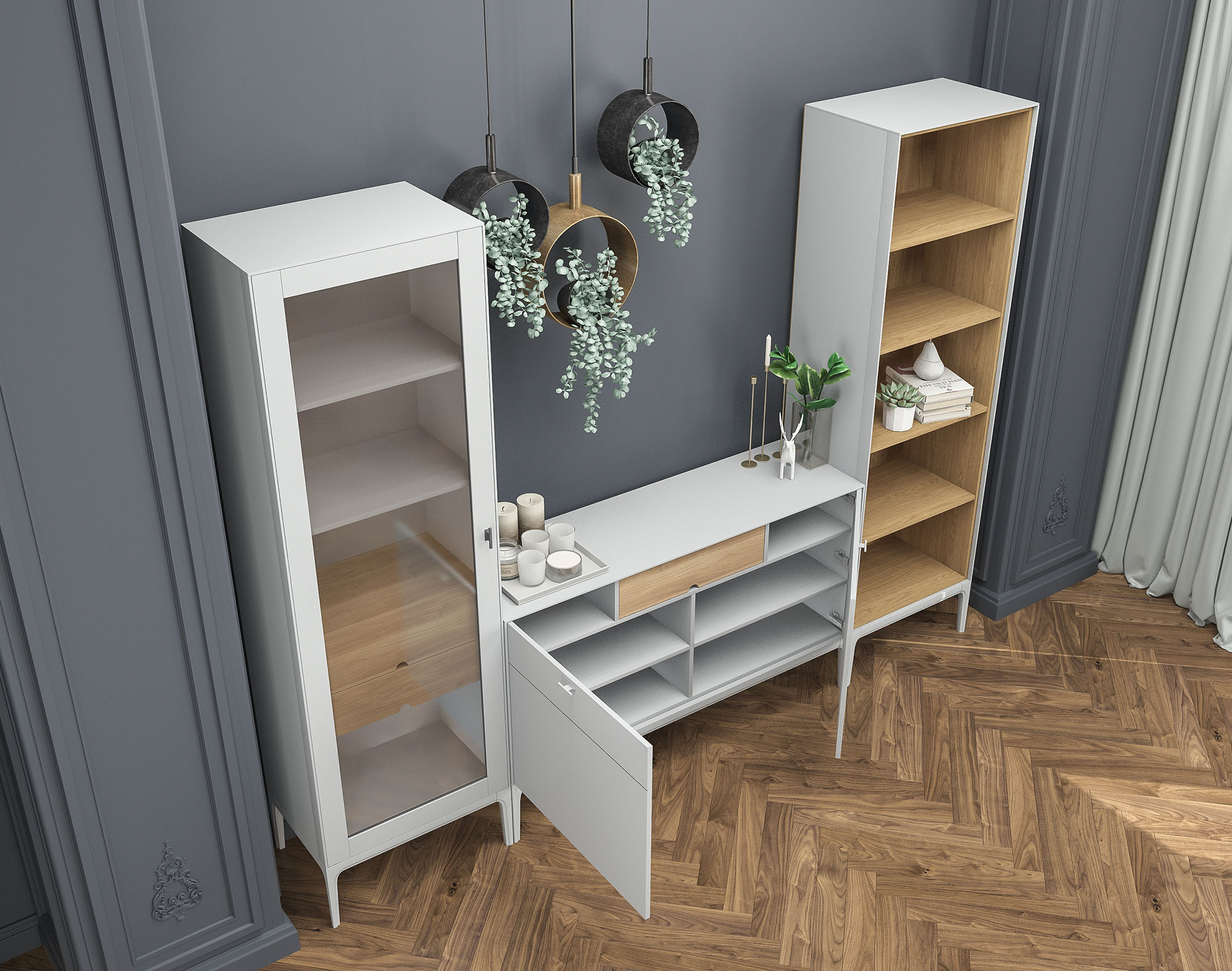 Цвет и декор:Айвори + американский орех | Мокко + американский орех | Айвори + серебристый дуб | Мокко + серебристый дуб