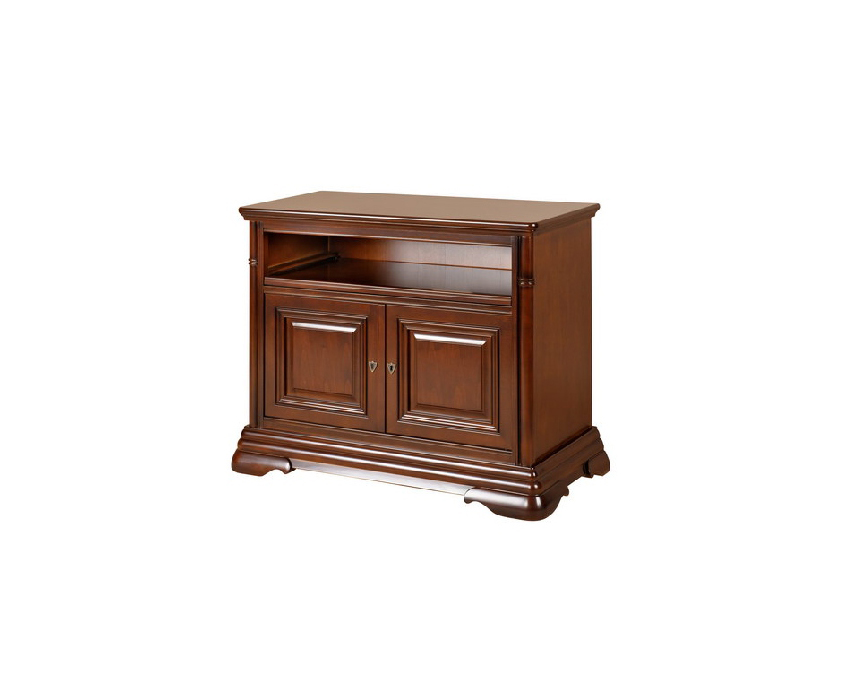 Комод под ТВ из коллекции Элеганс от фабрики Мобекс | Mobex выполнен в традиционном классическом стиле из натурального дерева в темной отделке орех.