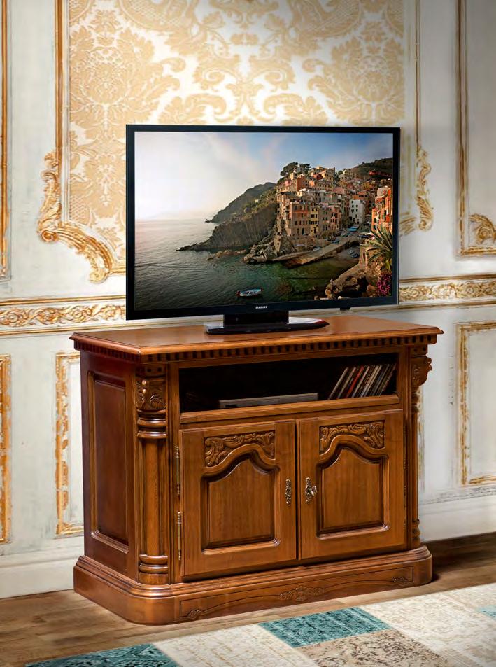 Комод под ТВ из коллекции Кристина от фабрики Simex создан в лучших традиция классического стиля, сочетая в себе натуральный массив дерева и богатую отделку ручной работы, которая демонстрирует роскошь изделия в каждой детали.