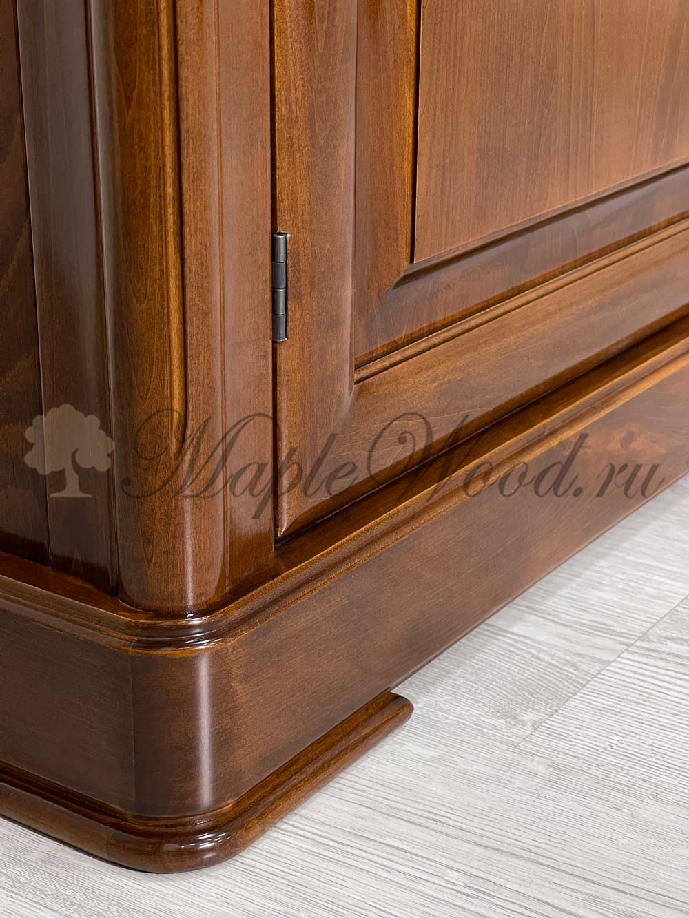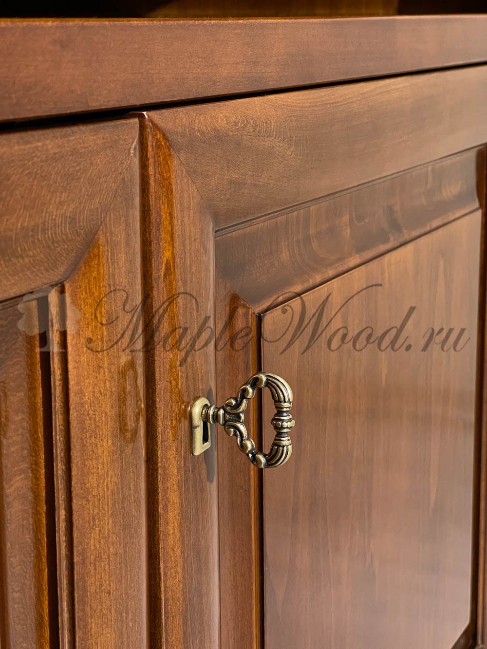 Комод изготавливается из массива дерева в разных цветовых решениях и представлен в 2-х вариантах: с остекленными и глухими дверцами.