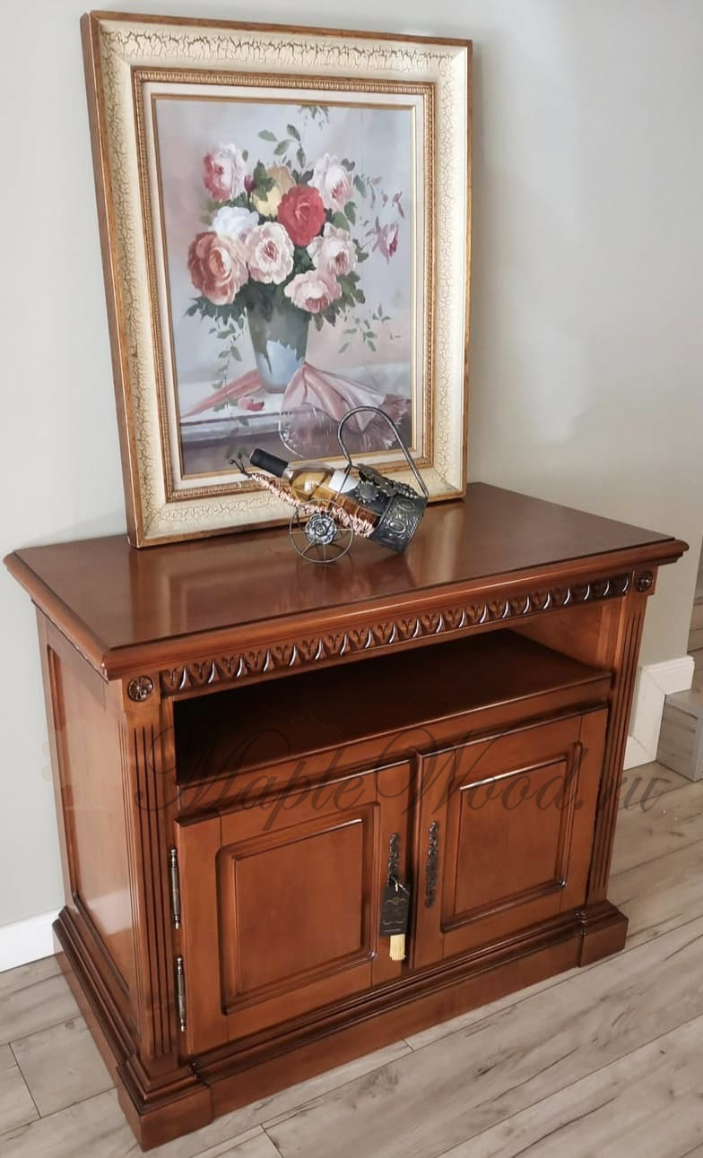 Комод под ТВ из коллекции Венеция от фабрики Simex выполнен в классическом стиле из натурального массива дерева и может быть исполнен как в стандартной отделке орех, так и в светлом оттенке слоновая кость.