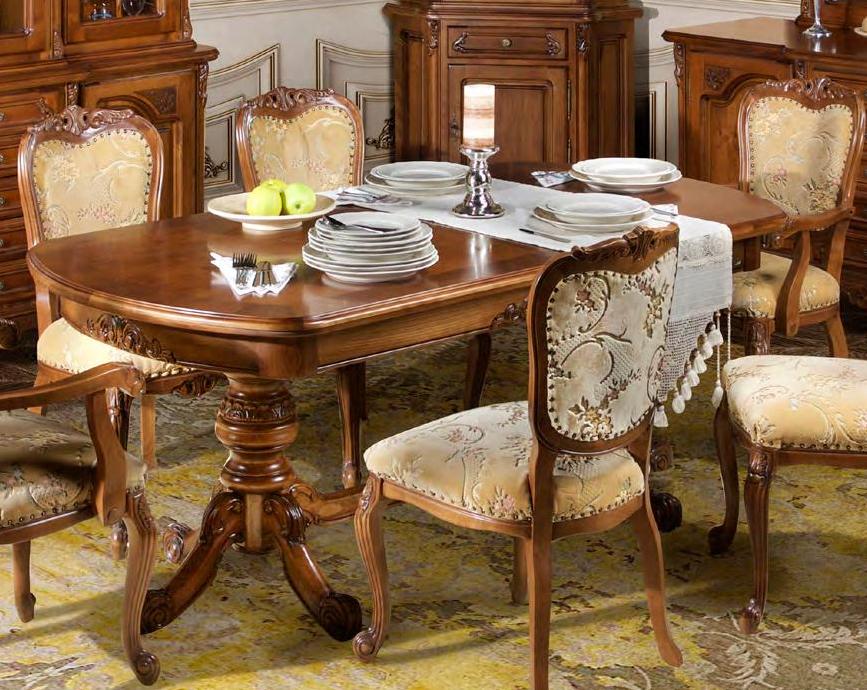 Обеденный стол для гостиной и столовой из коллекции Роял от фабрики Simex изготавливается из массива и шпона древесины с использованием высококачественной отделки, которая позволяет изделию на долго сохранять прочность и красоту.