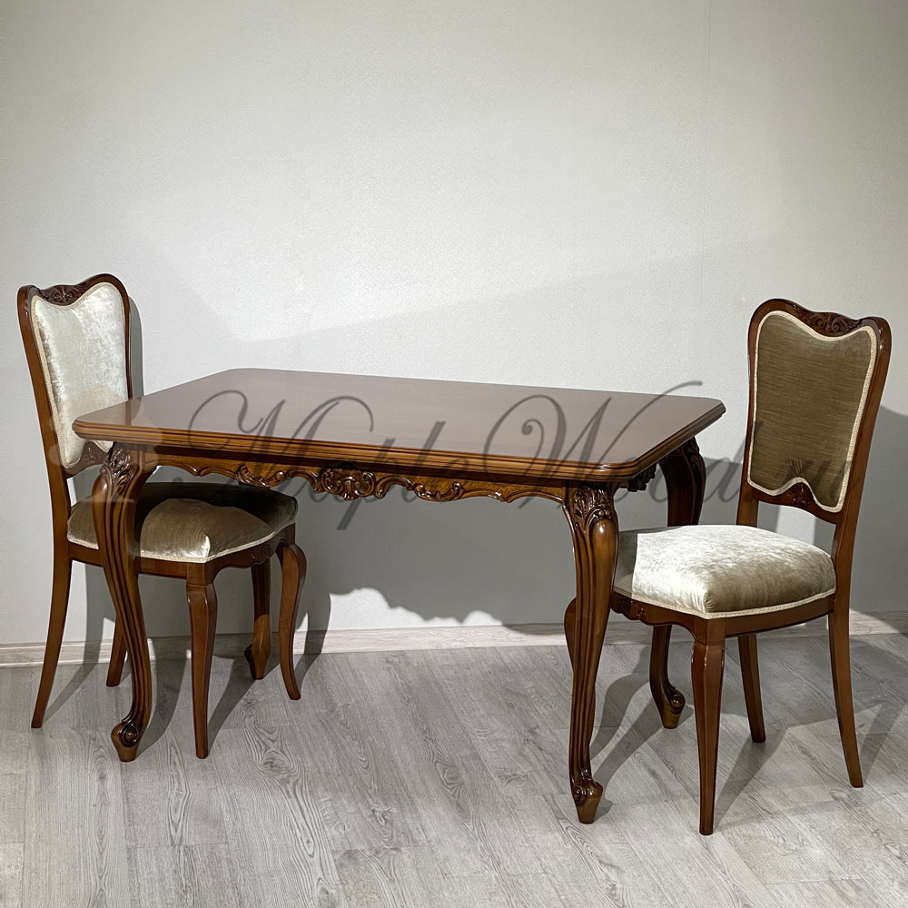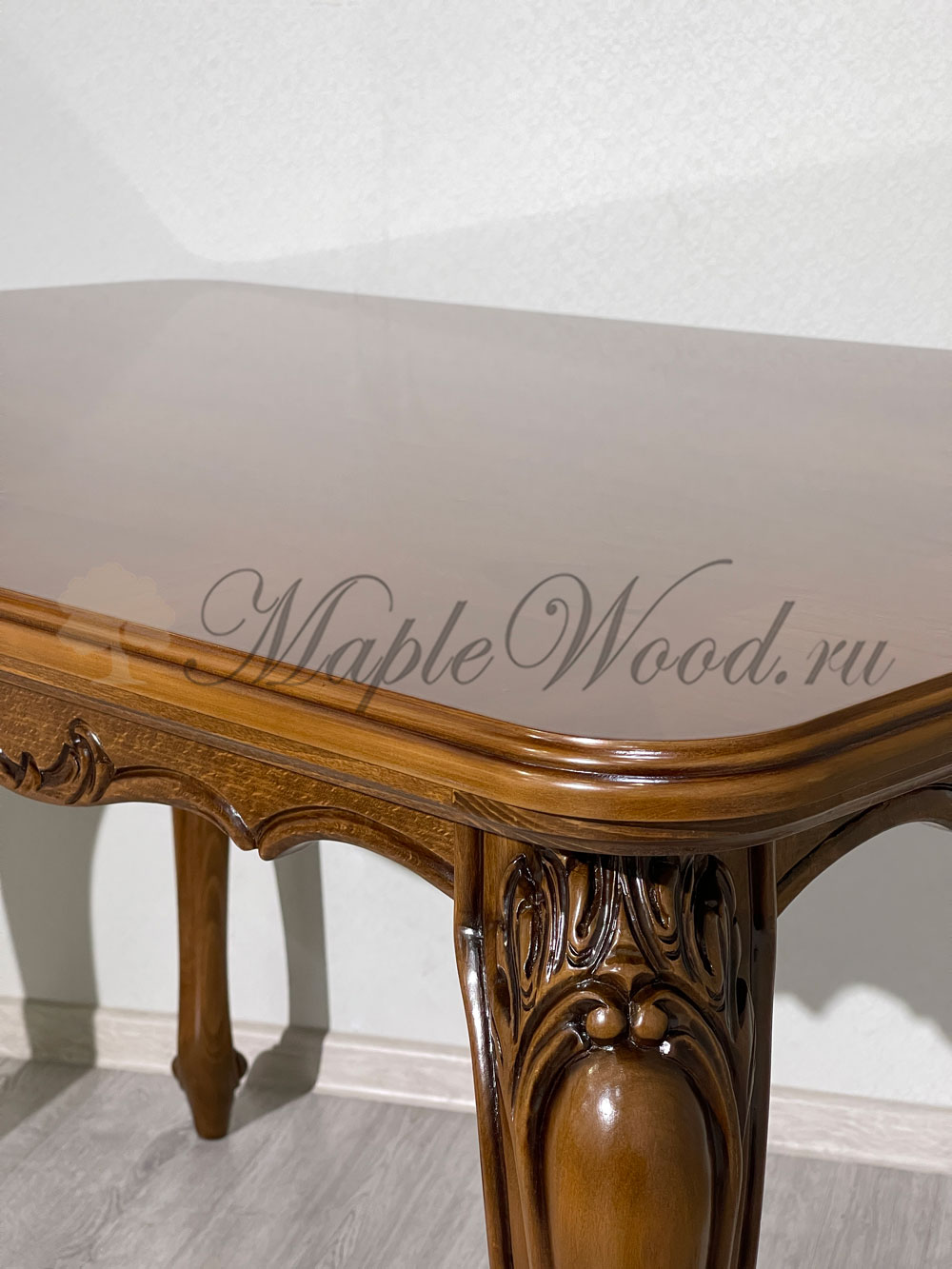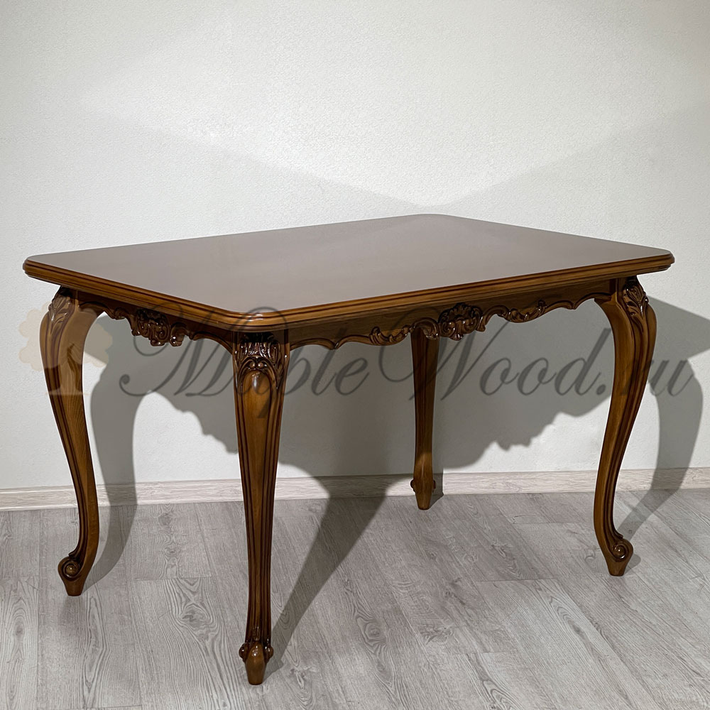 Прямоугольный стол на изогнутых ножках из коллекции Роял от фабрики Simex изготавливается из массива и шпона древесины с использованием высококачественной отделки, которая позволяет изделию на долго сохранять прочность и красоту.
