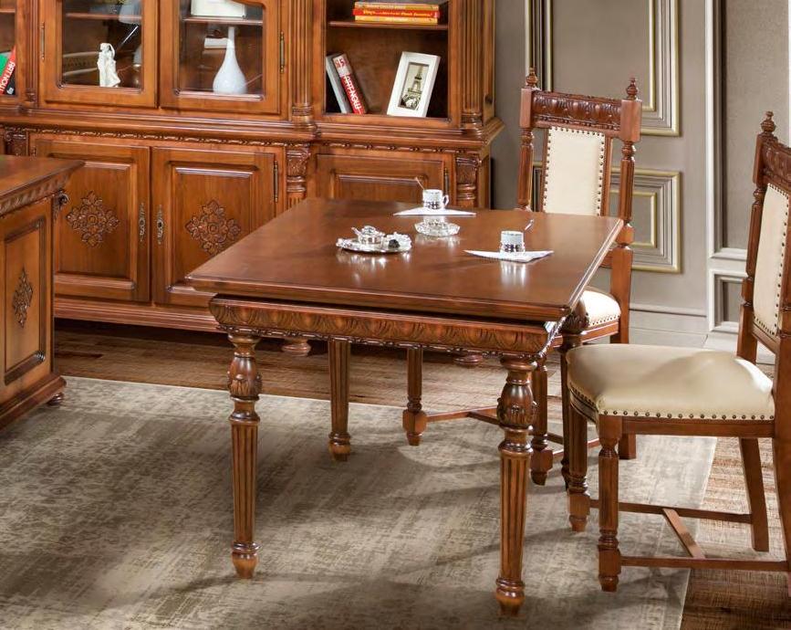 Обеденный стол из коллекции Венеция Люкс от фабрики Simex выполнен в традиционной прямоугольной форме из натурального массива дерева и украшен художественной резьбой, которая подчеркивает классический стиль изделия.