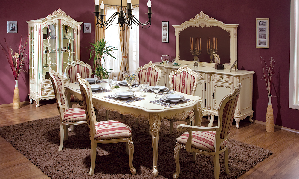 Раскладной обеденный стол из коллекции Клеопатра от фабрики Simex для большой и просторной гостиной, оформленной в классическом стиле.