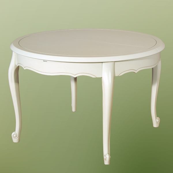 Круглый стол для кухни и гостиной из коллекции Анна от фабрики Мобекс | Mobex выполнен из натурального дерева бука в светлом оттенке слоновая кость и декорирован контрастной патиной, которая завершает дизайн изделия.