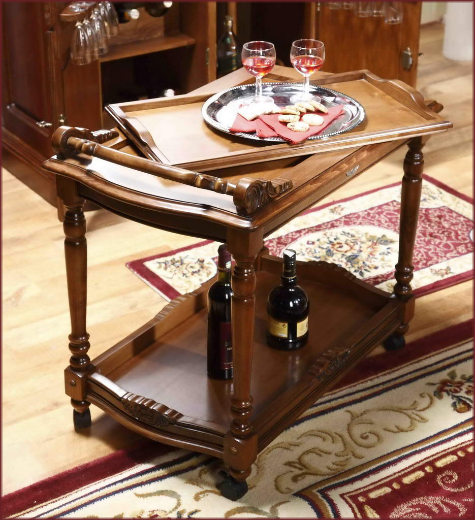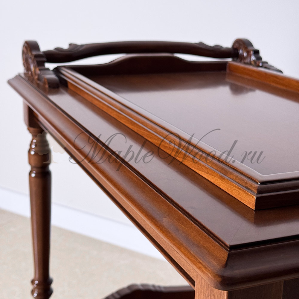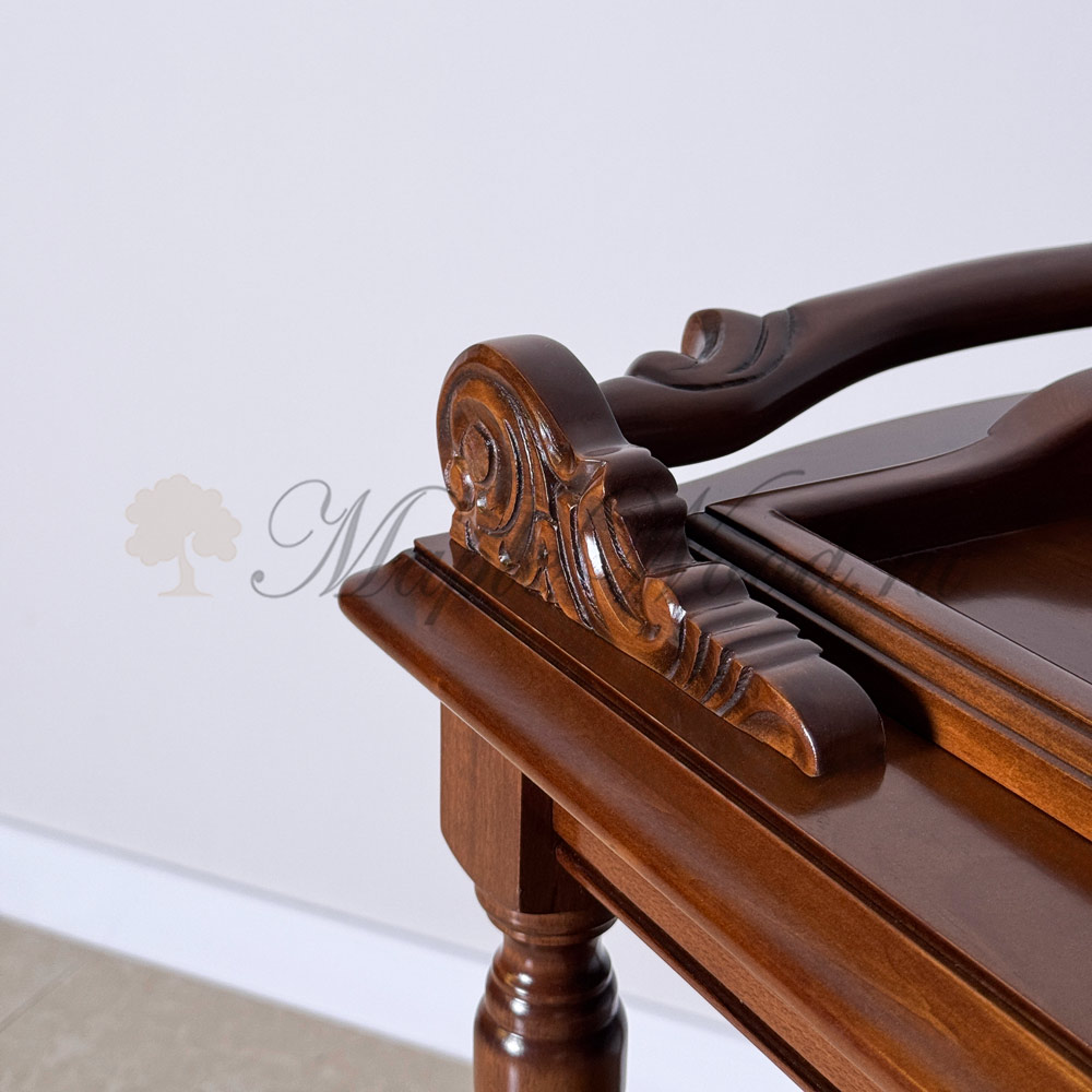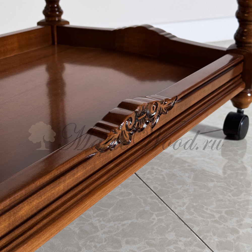 Сервировочный столик из коллекции Кристина от фабрики Simex выполнен в классическом стиле из натурального массива дерева и украшен резьбой, которую румынские мастера выполняют вручную.