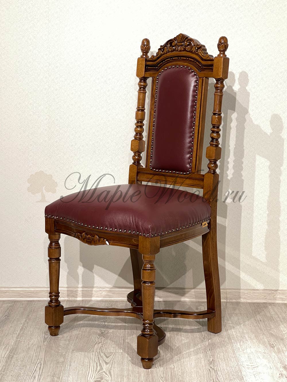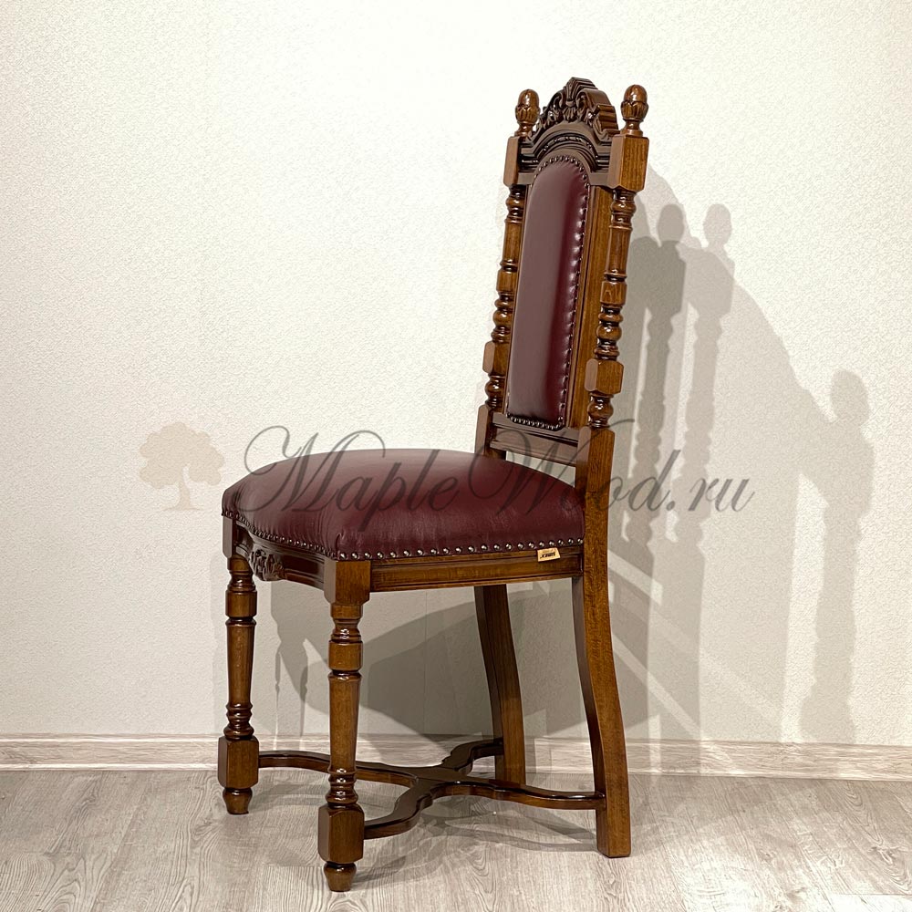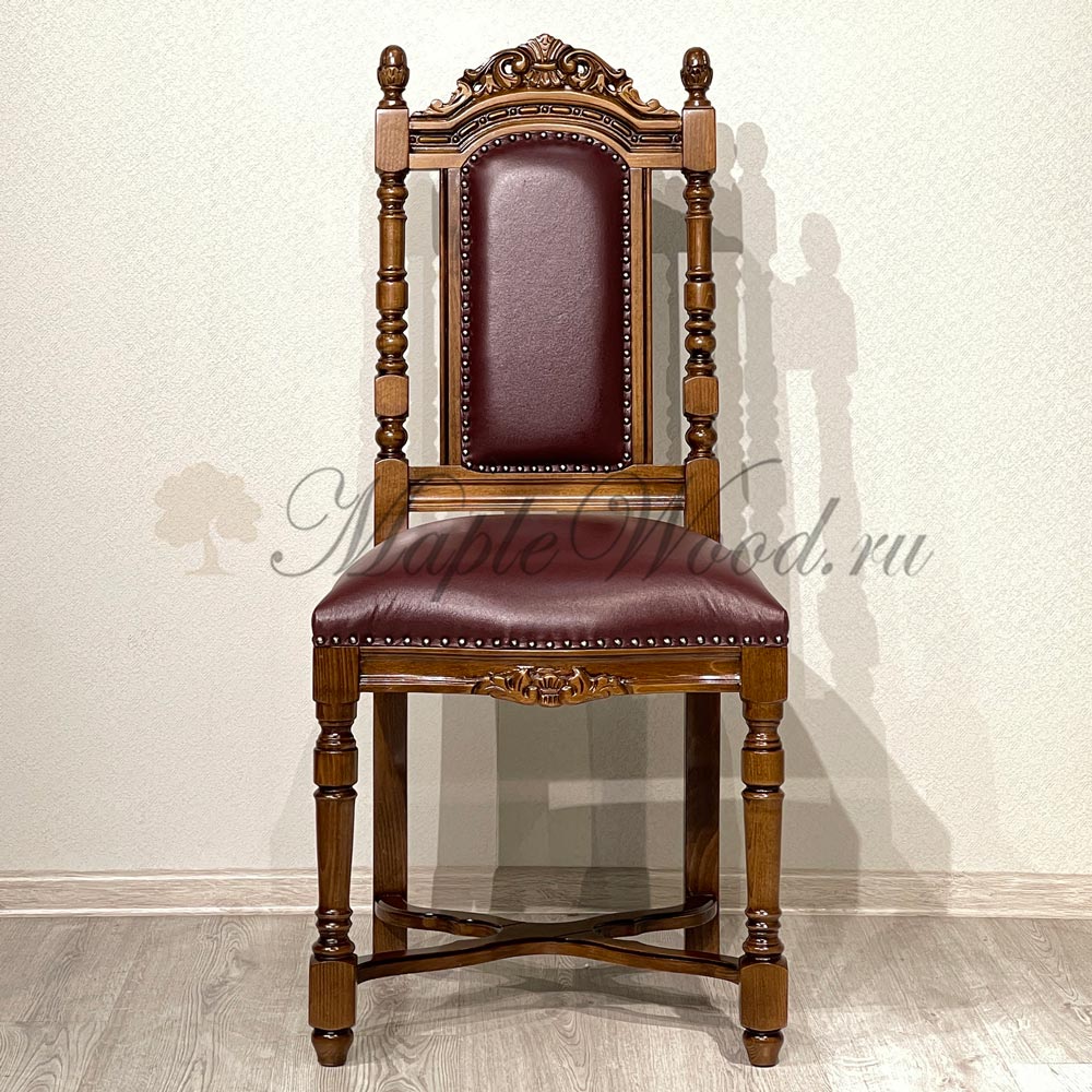 Стул из коллекции Кристина от фабрики Simex выполнен из массива дерева и украшен искусной резьбой, которая подчеркивает классический дизайн изделия, а в качестве обивочного материала предлагается натуральная кожа в разных цветовых решениях.