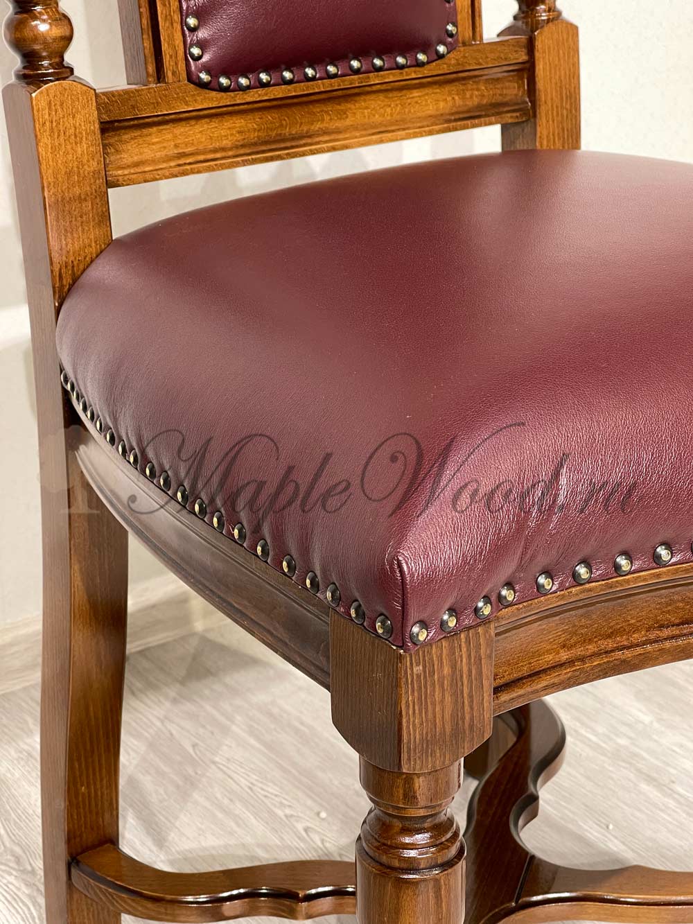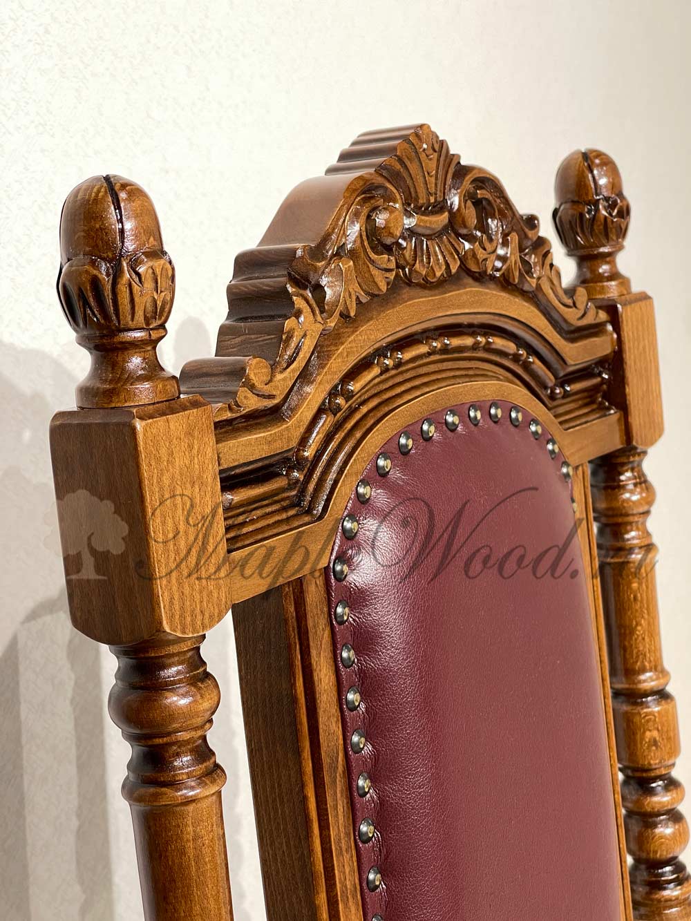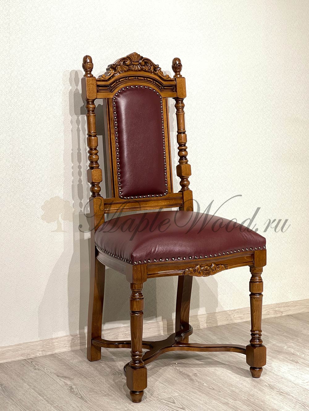 Стул из коллекции Кристина от фабрики Simex выполнен из массива дерева и украшен искусной резьбой, которая подчеркивает классический дизайн изделия, а в качестве обивочного материала предлагается натуральная кожа в разных цветовых решениях.