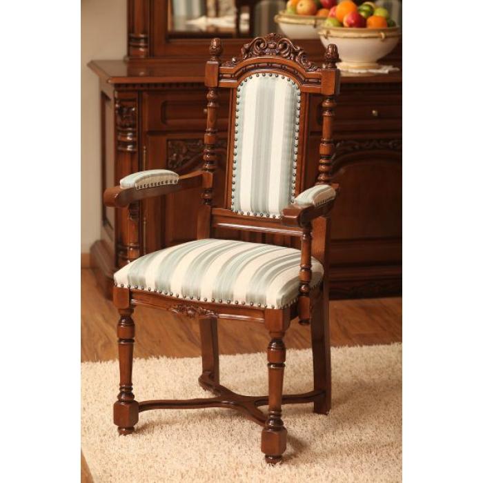 Стул с подлокотниками из коллекции Кристина от фабрики Simex выполнен из массива дерева и украшен искусной резьбой, которая подчеркивает классический дизайн изделия, а в качестве обивочного материала предлагается высококачественная ткань или натуральная кожа из каталога производителя.