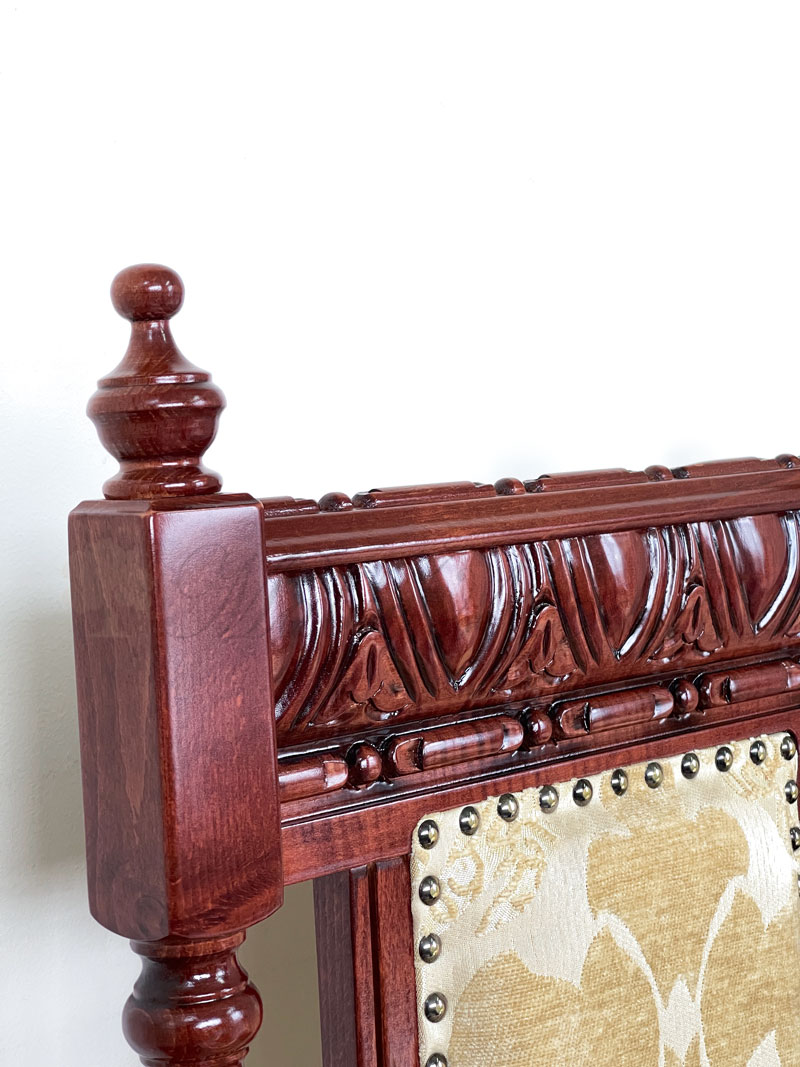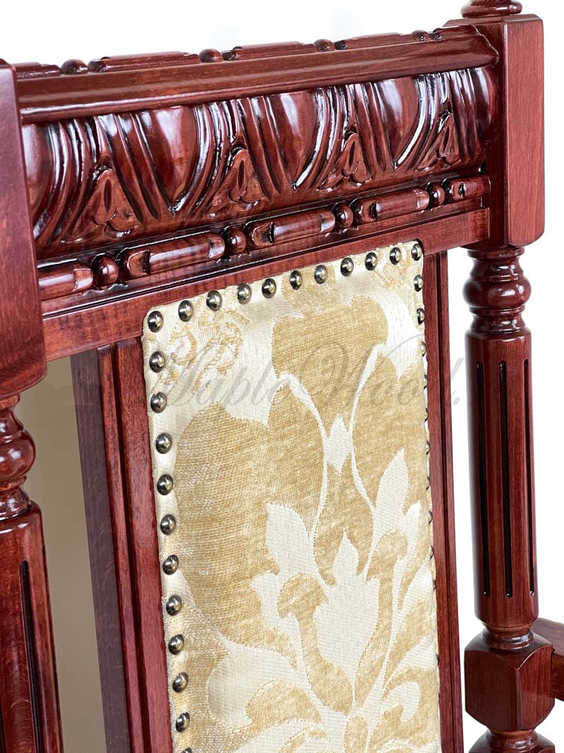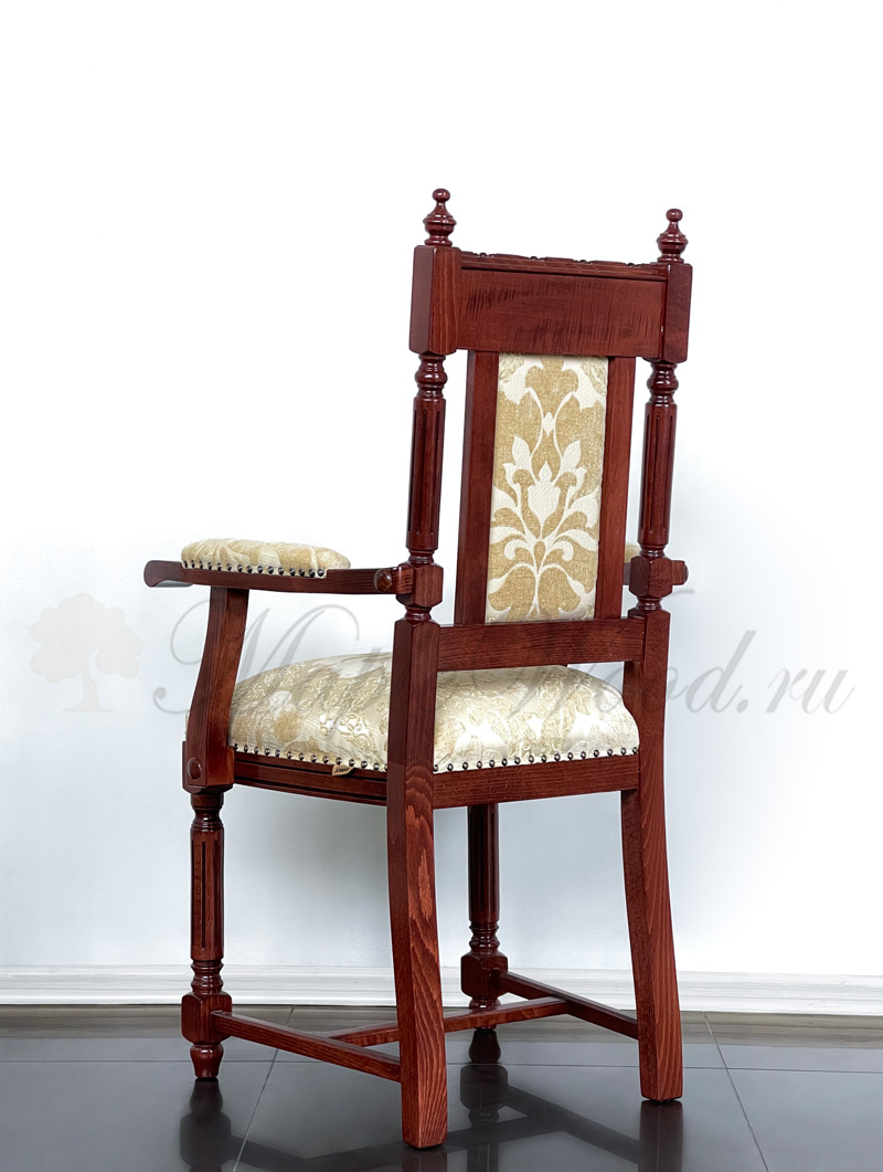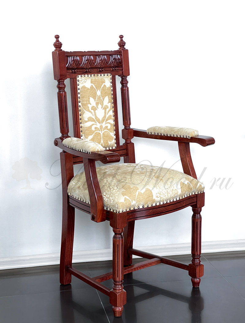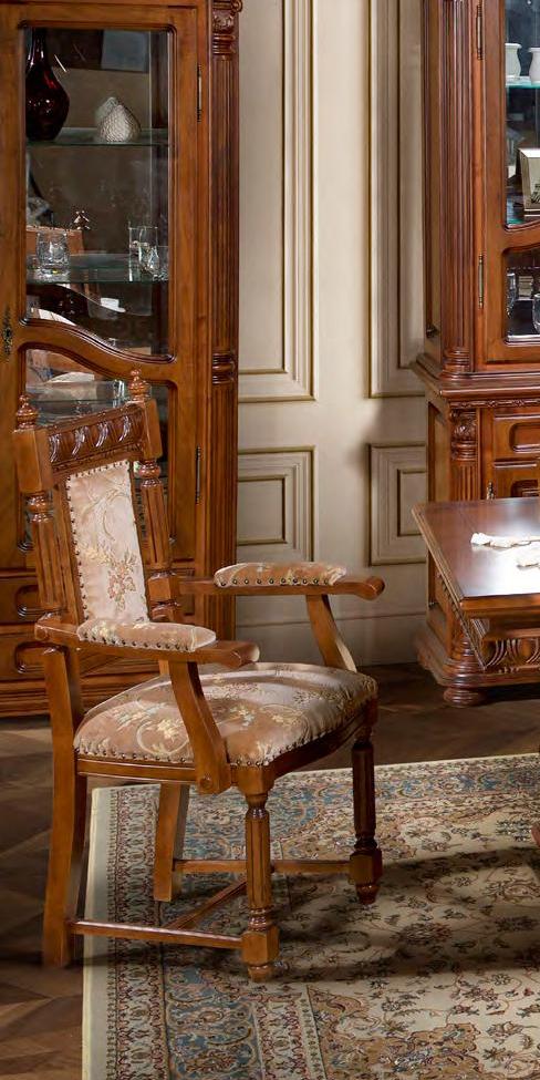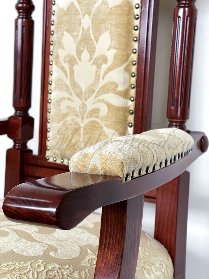 Стул с подлокотниками из коллекции Венеция Люкс от фабрики Simex выполнен из массива дерева и украшен искусной резьбой, которая подчеркивает классический дизайн изделия, а в качестве обивочного материала может быть использована ткань или натуральная кожа из каталога производителя.
