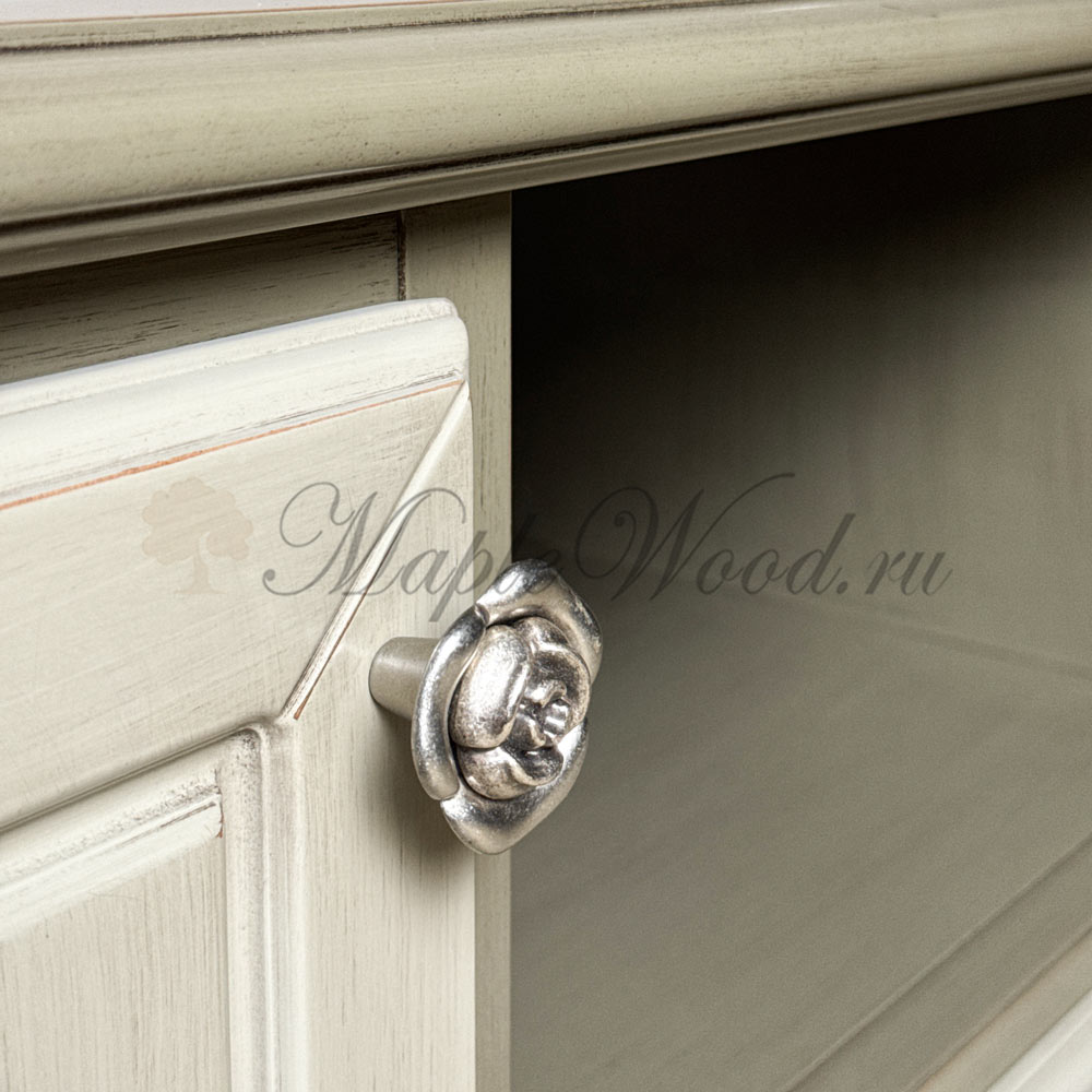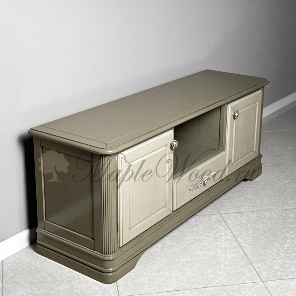 Тумба под ТВ из коллекции «Артемида» от фабрики Monte Cristo Mobili выполнена в неоклассическом стиле из натурального массива дерева в оригинальном оливковом оттенке.