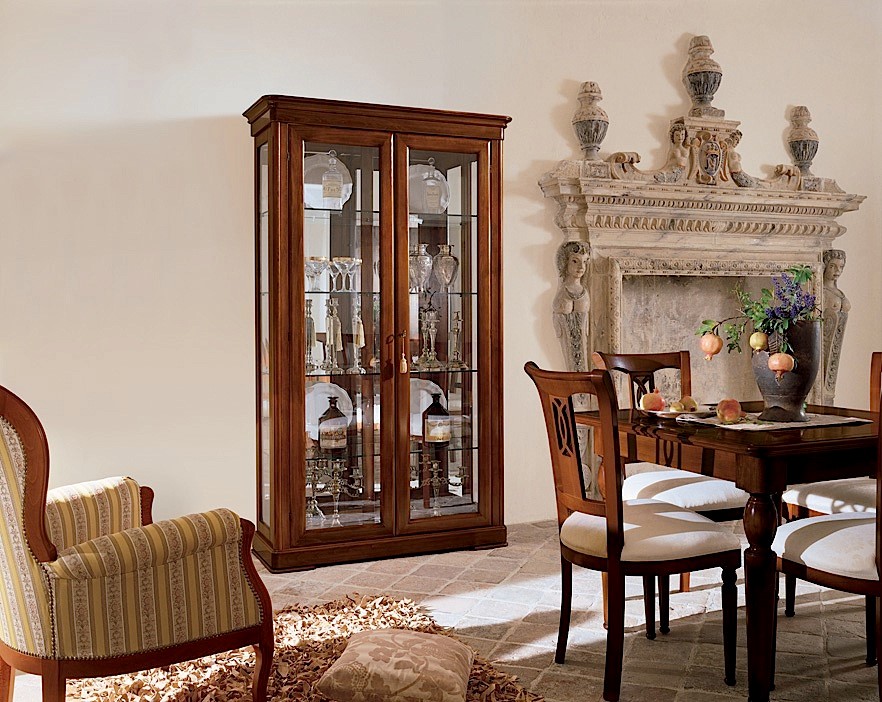 Шкаф-витрина для хранения посуды и сувениров из коллекции Ла Скала от фабрики Монте Кристо Мобили | Monte Cristo Mobili выполнен в неоклассическом стиле из натурального дерева и сочетает в себе строгость и благородство дизайна без излишних декоративных украшений.