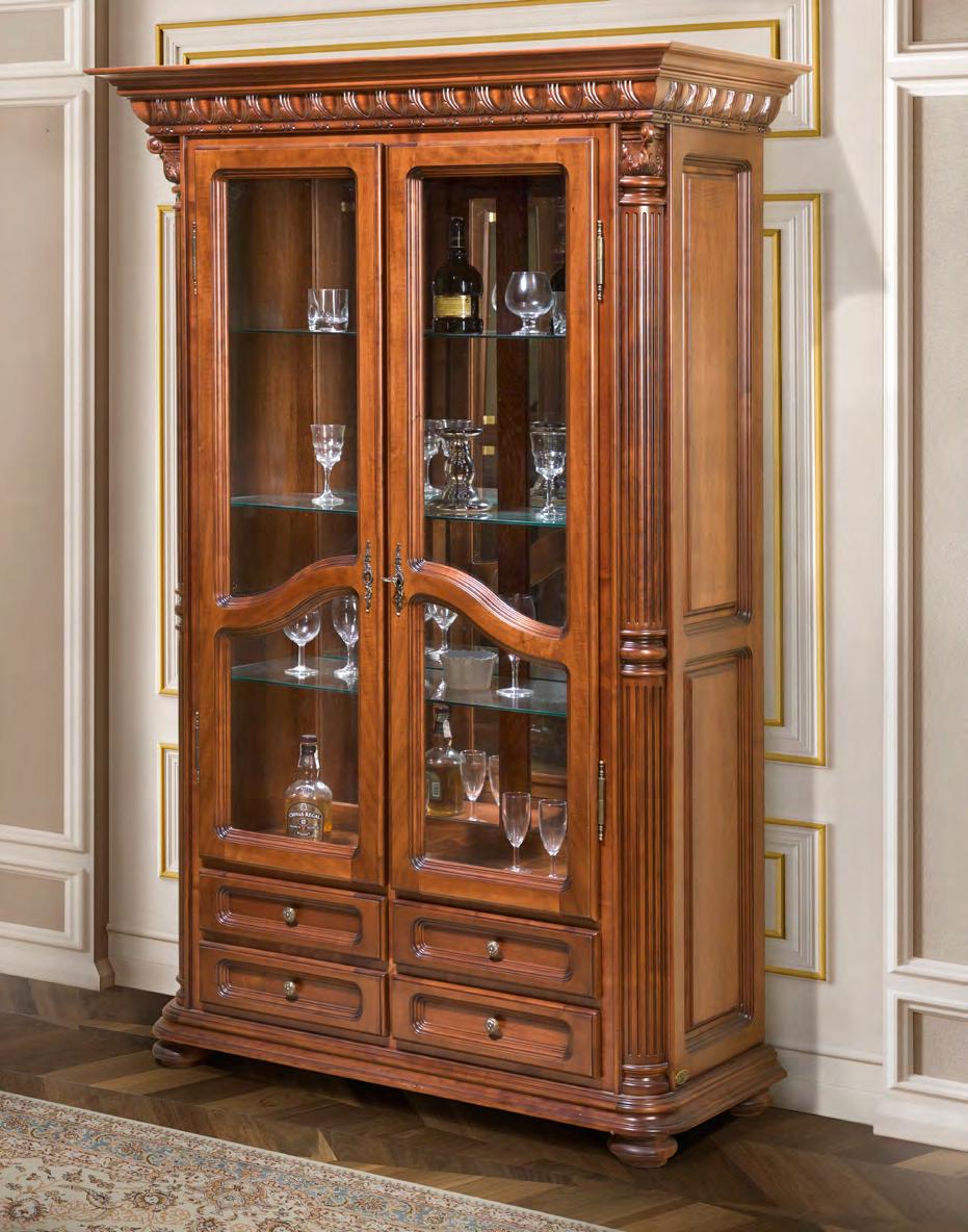 Витрина 2-х дверная из коллекции Венеция Люкс от фабрики Simex выполнена из натурального дерева в отделке орех с красным оттенком и декорирована резными элементами, которые подчёркивают классический дизайн изделия.