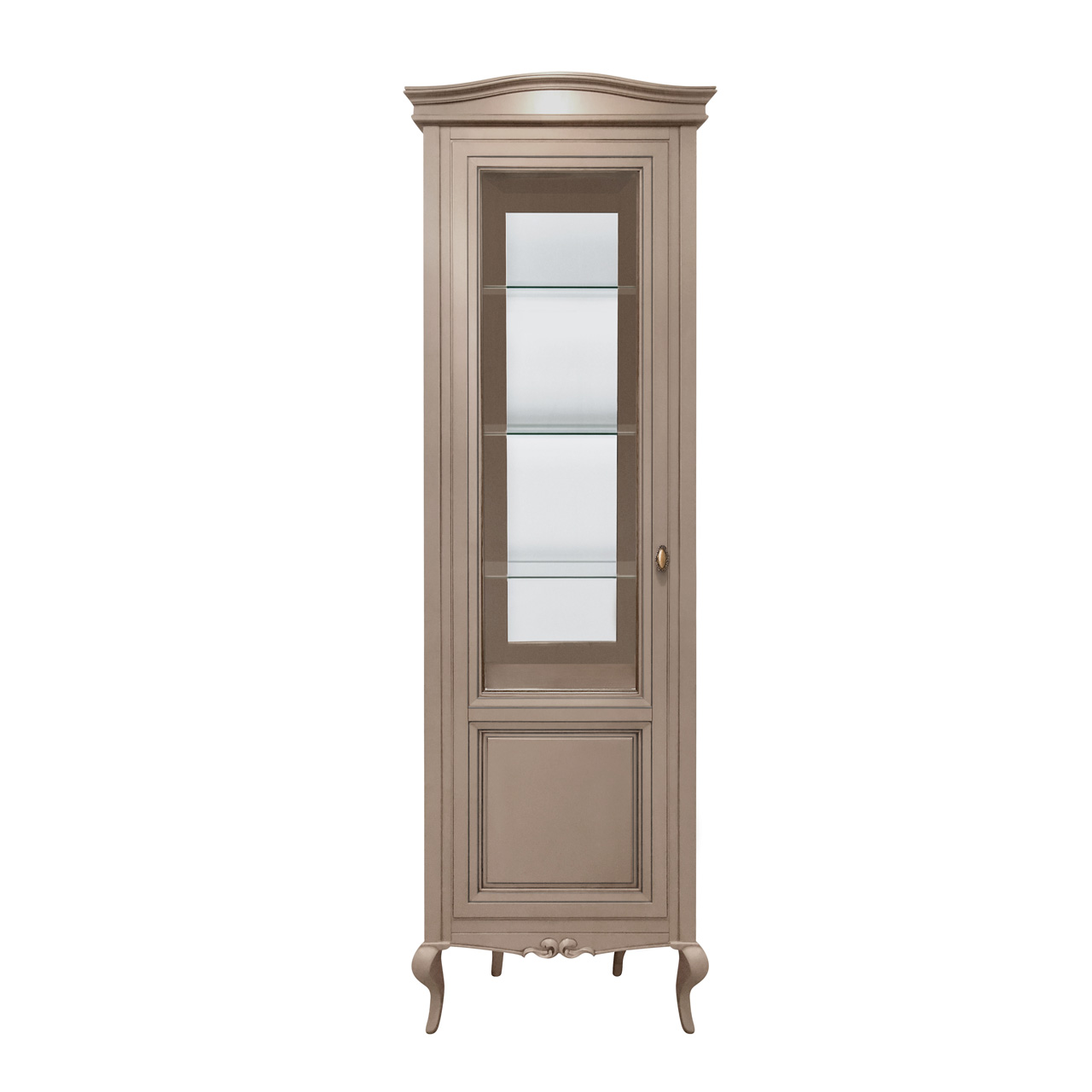 Однодверная витрина для гостиной из коллекции Портофино от фабрики Тимбер выполнена из крашенного МДФ с гладкой фактурой и матовым типом покрытия, которое отличается практичностью и простотой в уходе.