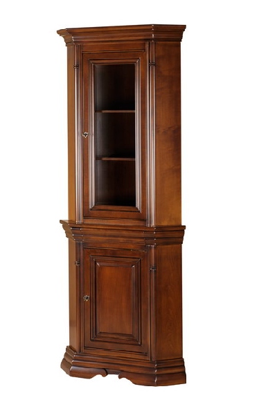 Витрина выполнена из массива дерева в тёмной отделке орех, сочетая в себе элегантные формы и сдержанный стиль классики.