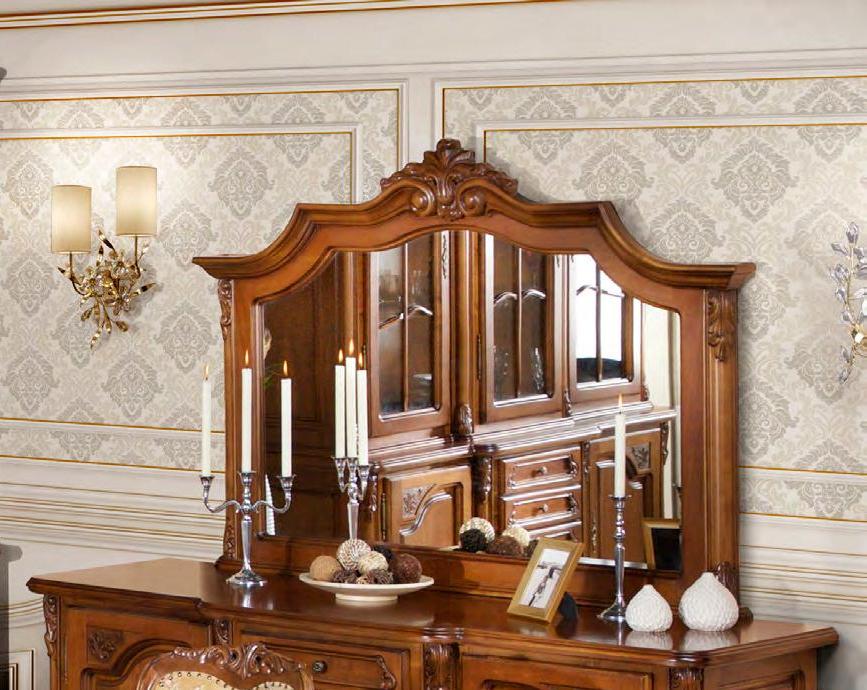 Большое зеркало в раме из натурального массива дерева служит дополнением к буфету из коллекции Роял от фабрики Simex.