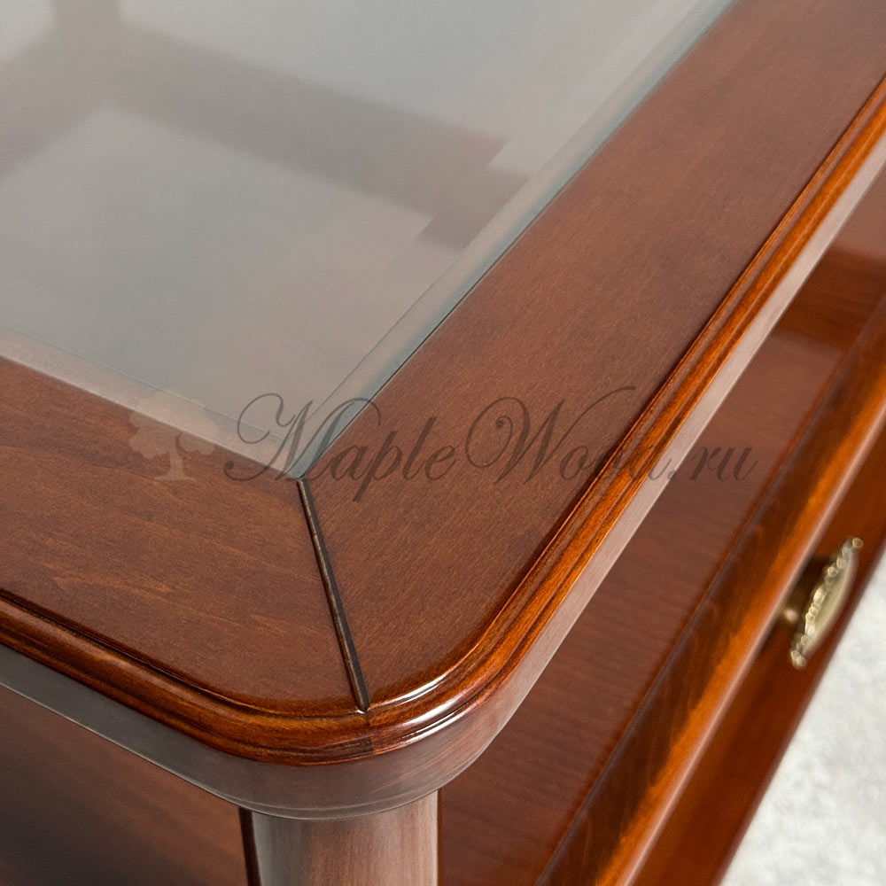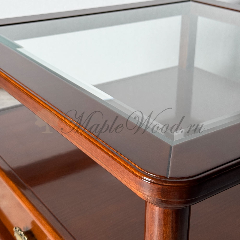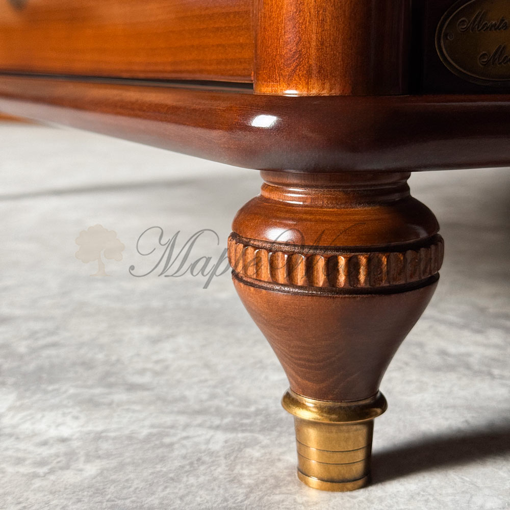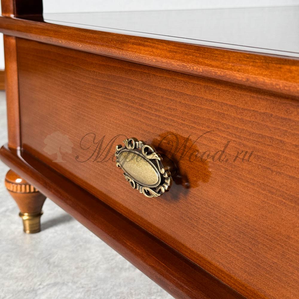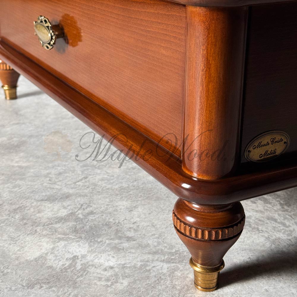 Квадратный столик для гостиной из коллекции Бурбон от фабрики Monte Cristo Mobili сочетает в себе два вида материалов: стекло и массив натурального дерева, а бронзовая фурнитура и фигурные ножки завершают лаконичный дизайн изделия, придавая ему особый стиль и оригинальность.