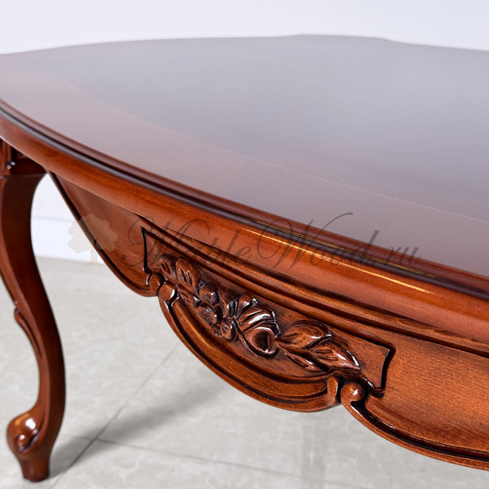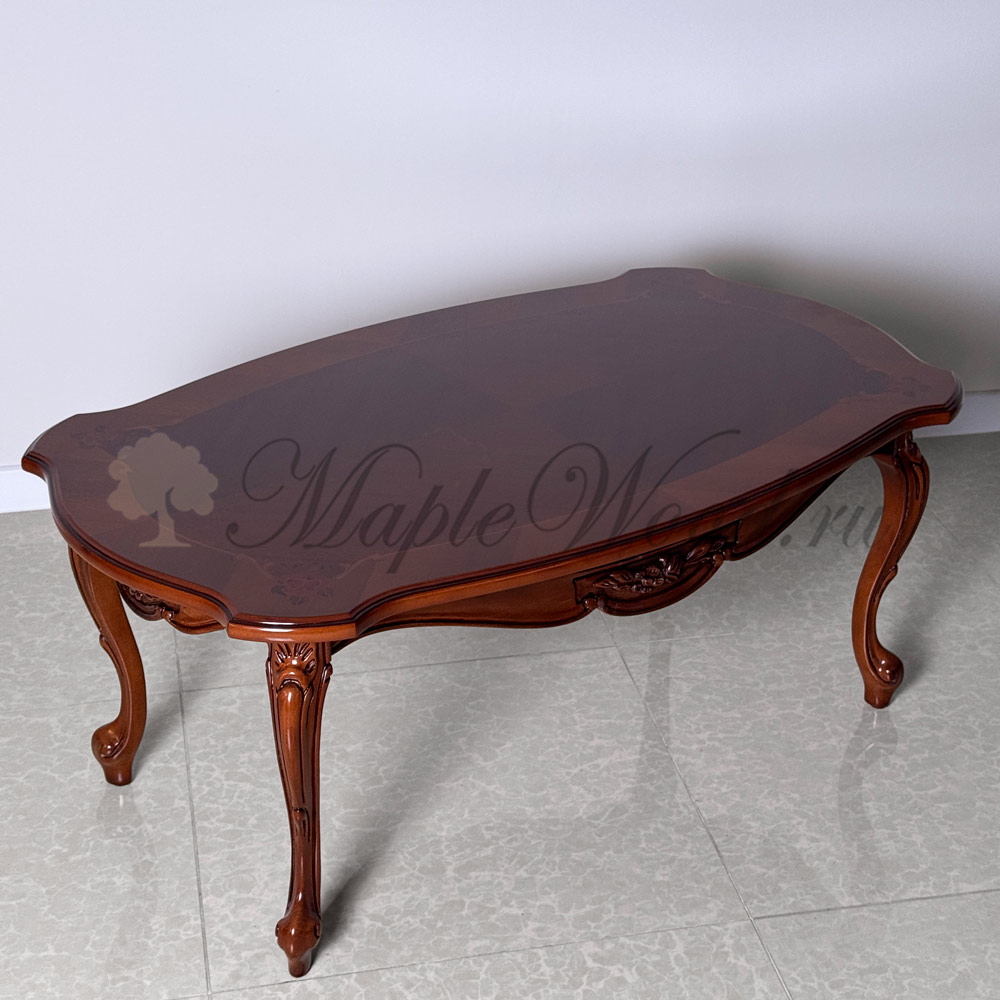 Журнальный столик для гостиной из коллекции Регаллис от фабрики Nord Simex выполнен в классическом стиле из натурального дерева и декорирован искусной резьбой и инкрустацией из шпона.