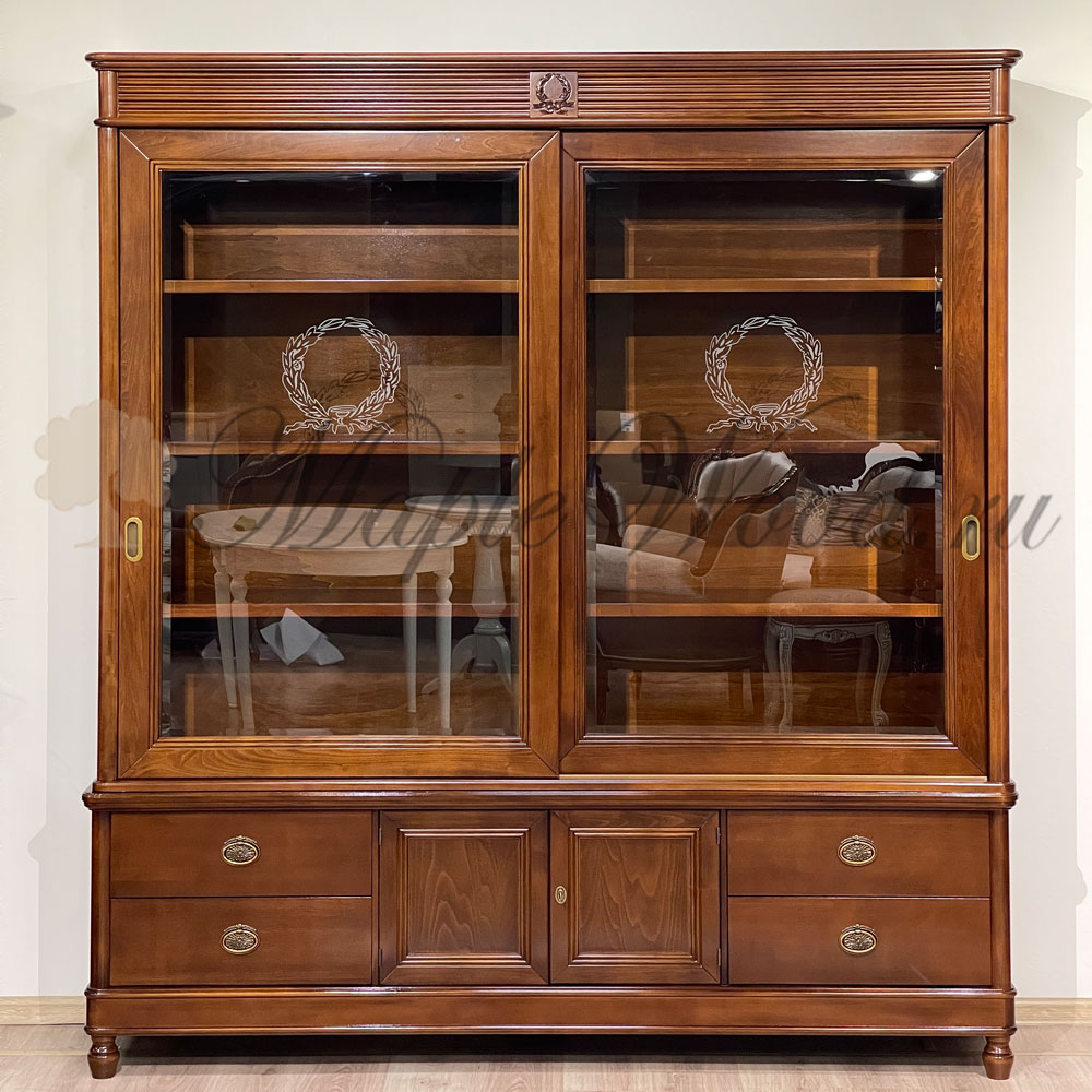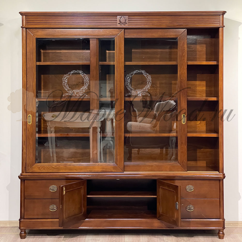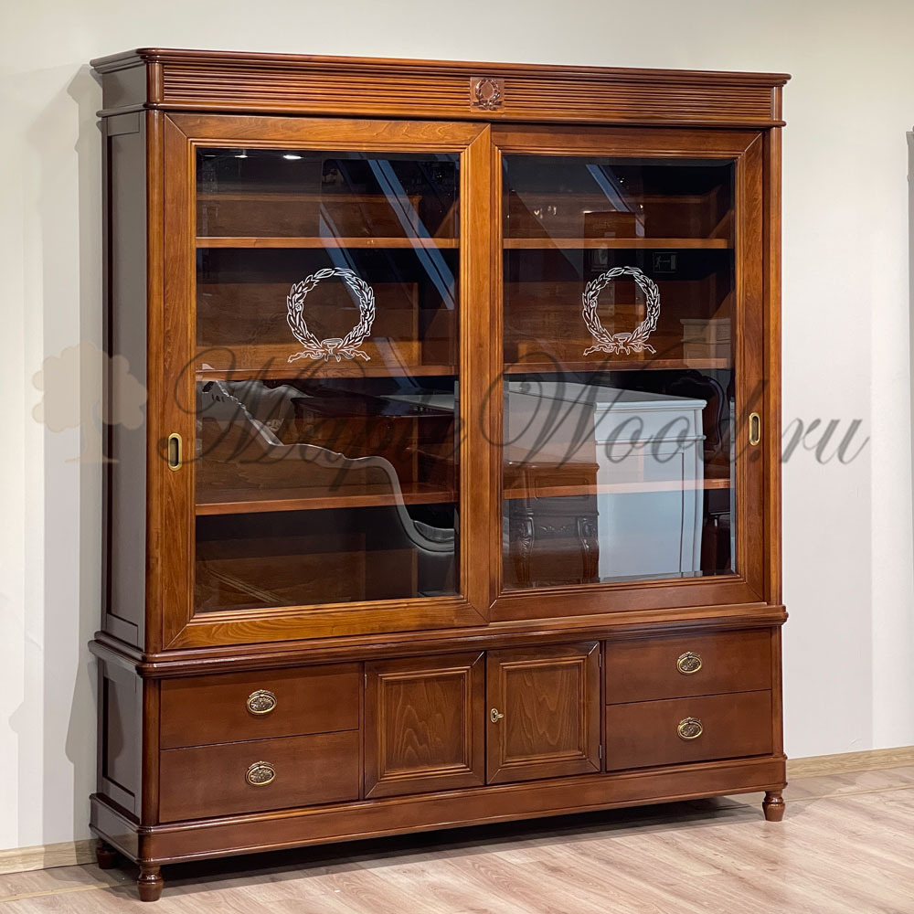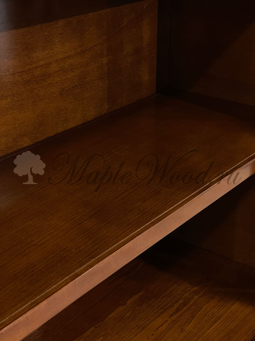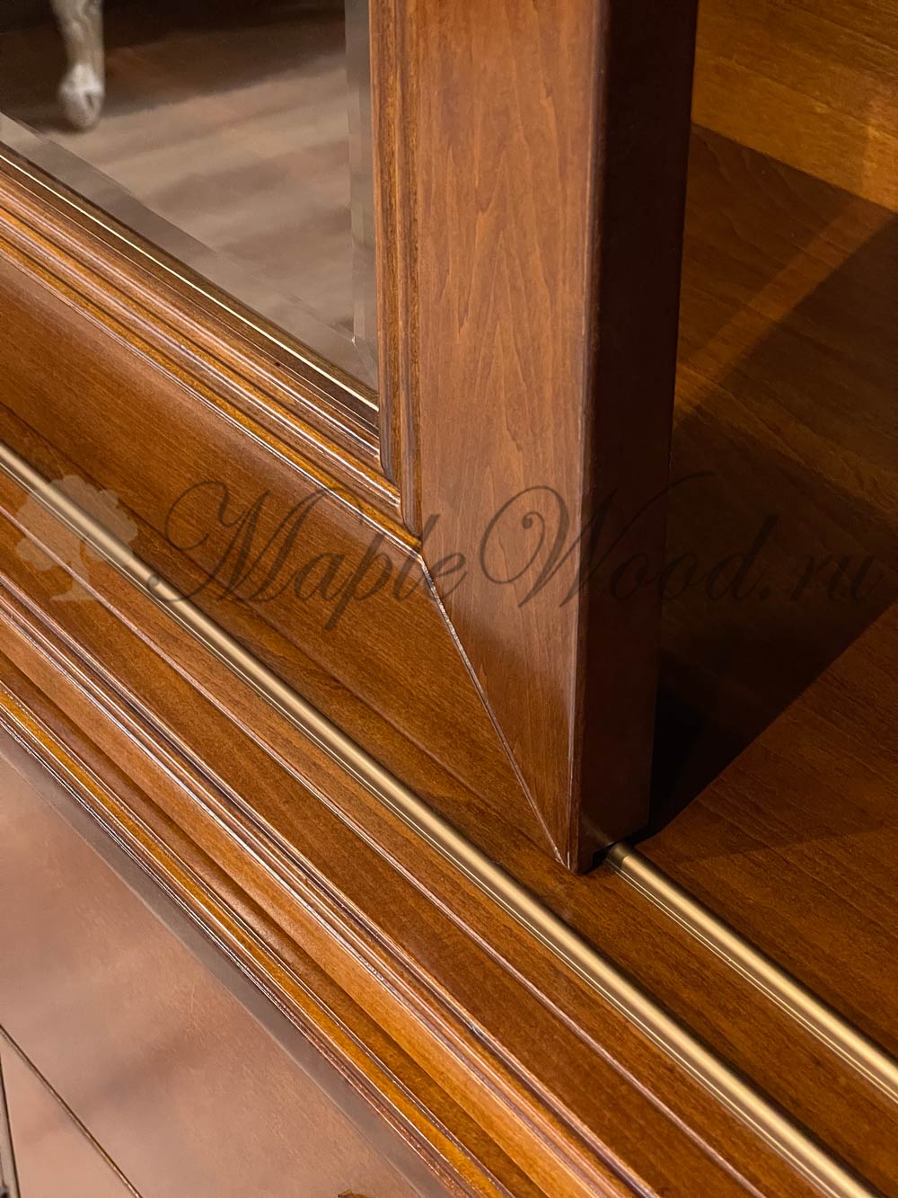 Книжный шкаф выполнен в итальянском стиле из натурального дерева и имеет яркий акцент в виде фрезеровки на карнизе, которая подчеркивает оригинальность изделия.
