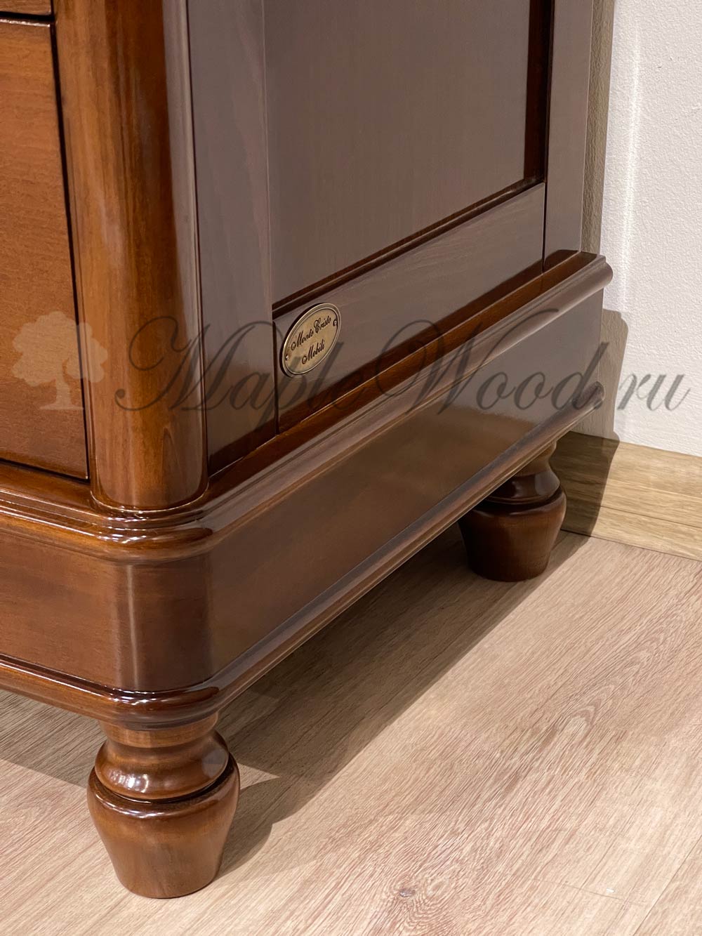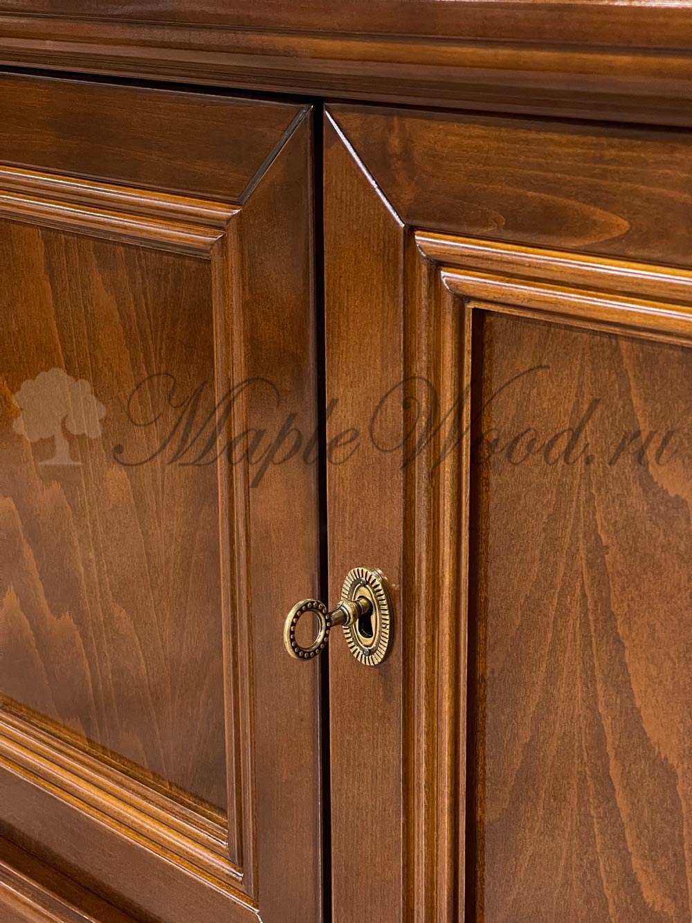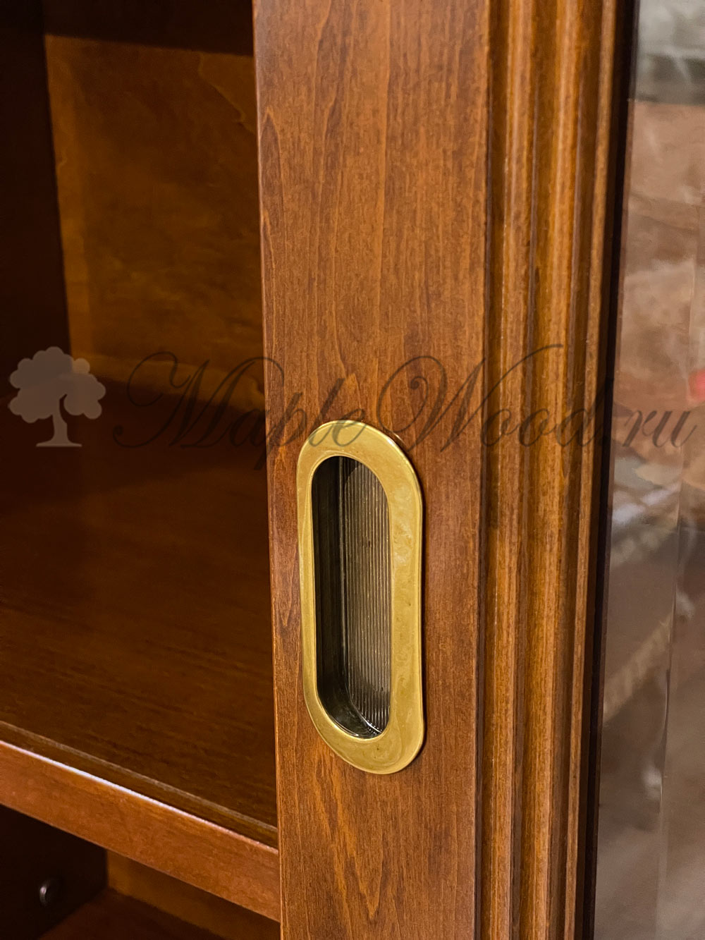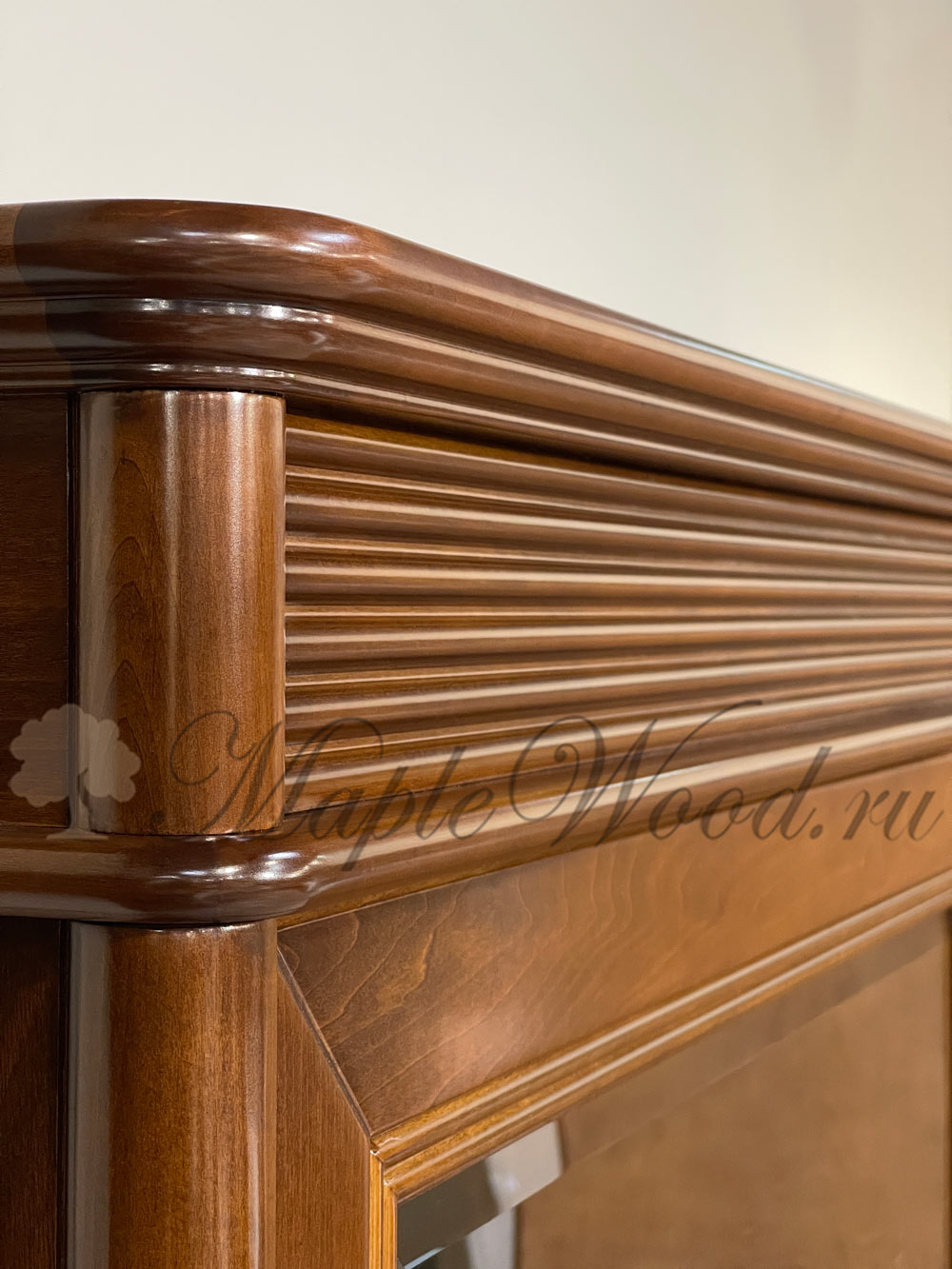 Книжный шкаф выполнен в итальянском стиле из натурального дерева и имеет яркий акцент в виде фрезеровки на карнизе, которая подчеркивает оригинальность изделия.