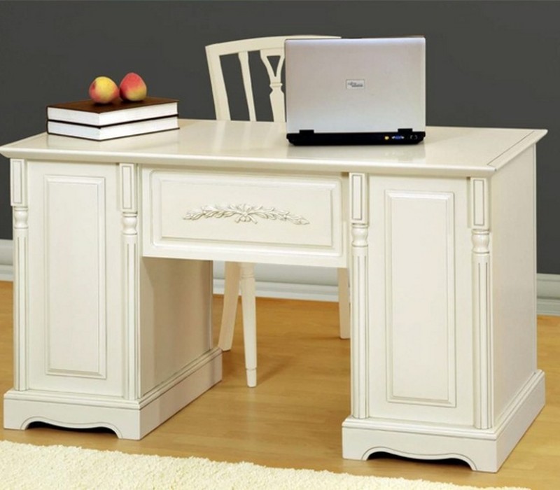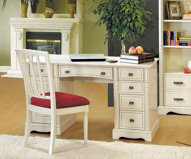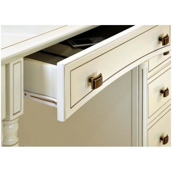 Письменный стол выполнен в нежном стиле прованс из натурального дерева бука и декорирован контрастной патиной, которая завершает дизайн изделия.