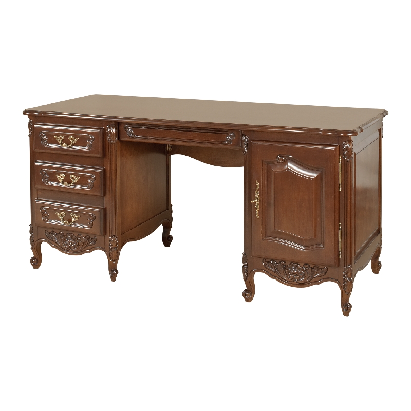 Письменный стол для кабинета в классическом стиле из массива дерева. Страна производитель: Румыния. Фабрика: Мобекс | Mobex. Цвет: орех.