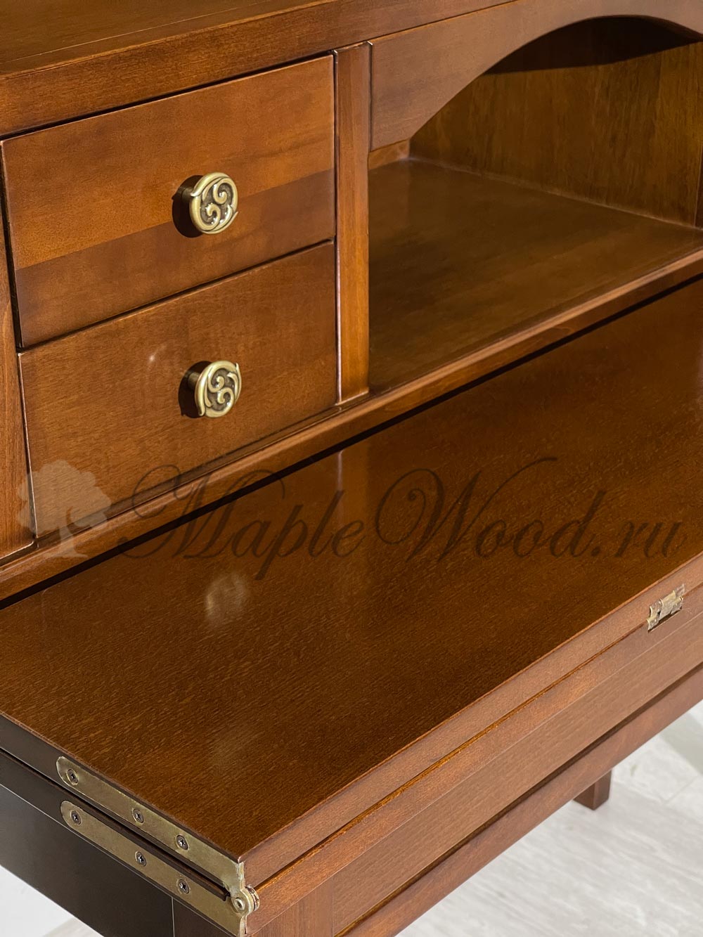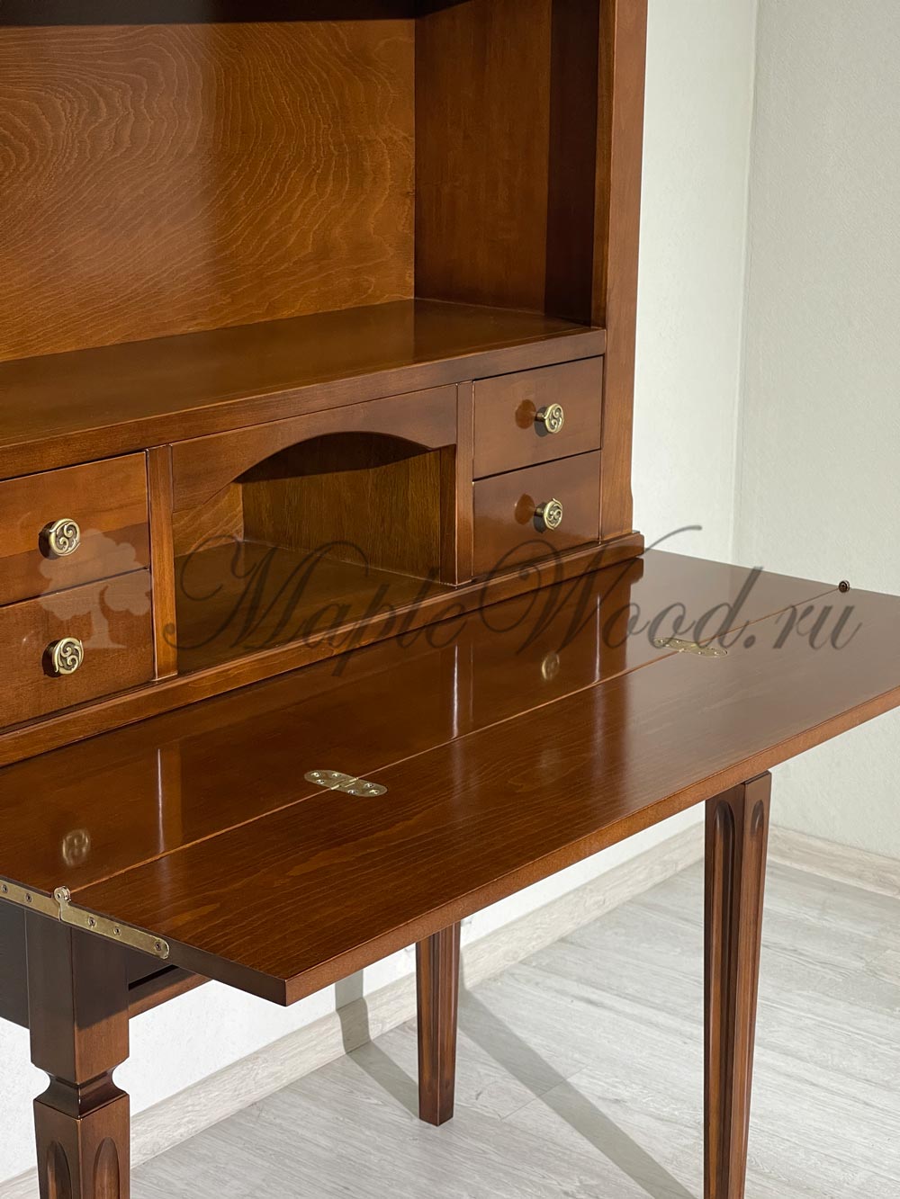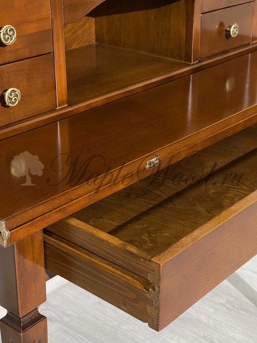 Письменный стол-секретер из коллекции Комплименти от фабрики Монте Кристо Мобили | Monte Cristo Mobili оборудован откидной столешницей, надставкой и большим выдвижным ящиком, который закрывается на ключ.
