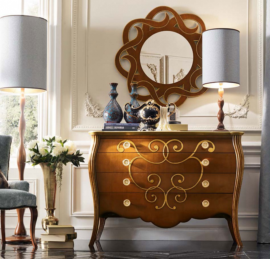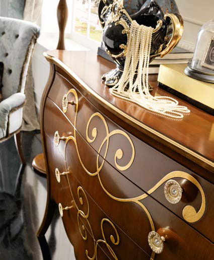 Бельевой комод из коллекции Франческо дополнит и подчеркнет классический интерьер спальни, своей пышной формой и утонченным декором.