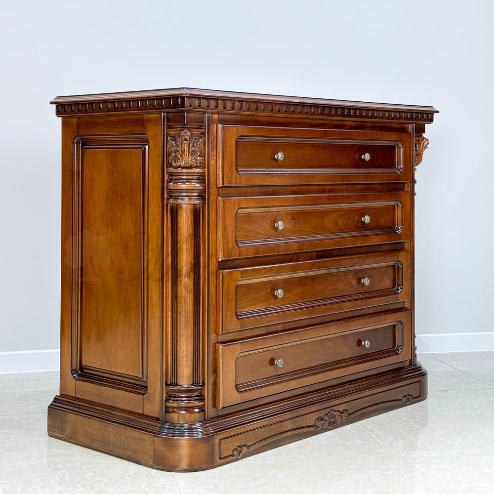Комод для белья и одежды из коллекции Кристина от фабрики Simex создан в лучших традиция классического стиля, сочетая в себе натуральный массив дерева и богатую отделку ручной работы, которая демонстрирует роскошь изделия в каждой детали.
