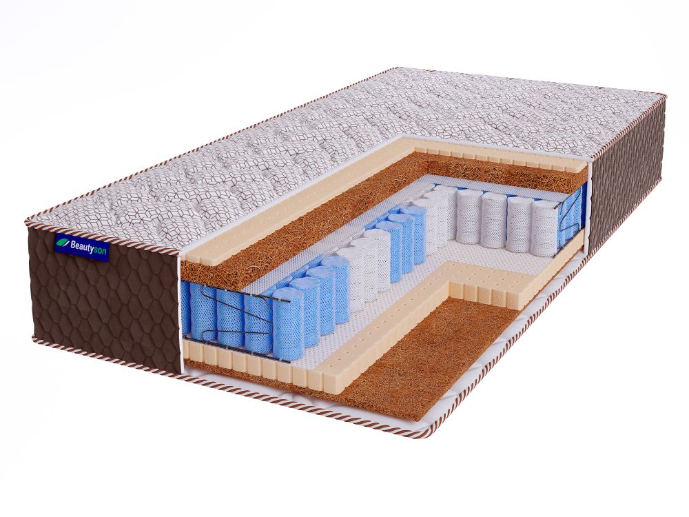 HIT Optima TFK+ LUX от фабрики Beautyson – ортопедический матрас с независимым пружинным блоком, который обеспечивает поддержку и здоровое анатомическое положение позвоночника во время сна и отдыха. Модель обладает разной жесткостью сторон: умеренно-жесткая и умеренно-мягкая.